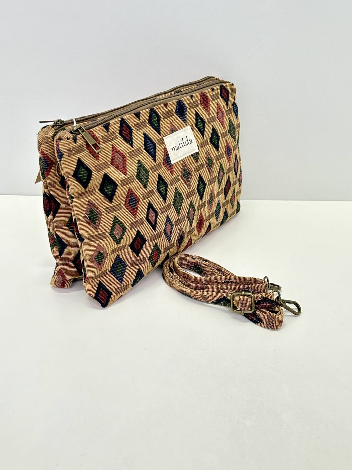 Bandolera con cierre de cremallera y asa o correa. Ideal para el día a día con manos libres.