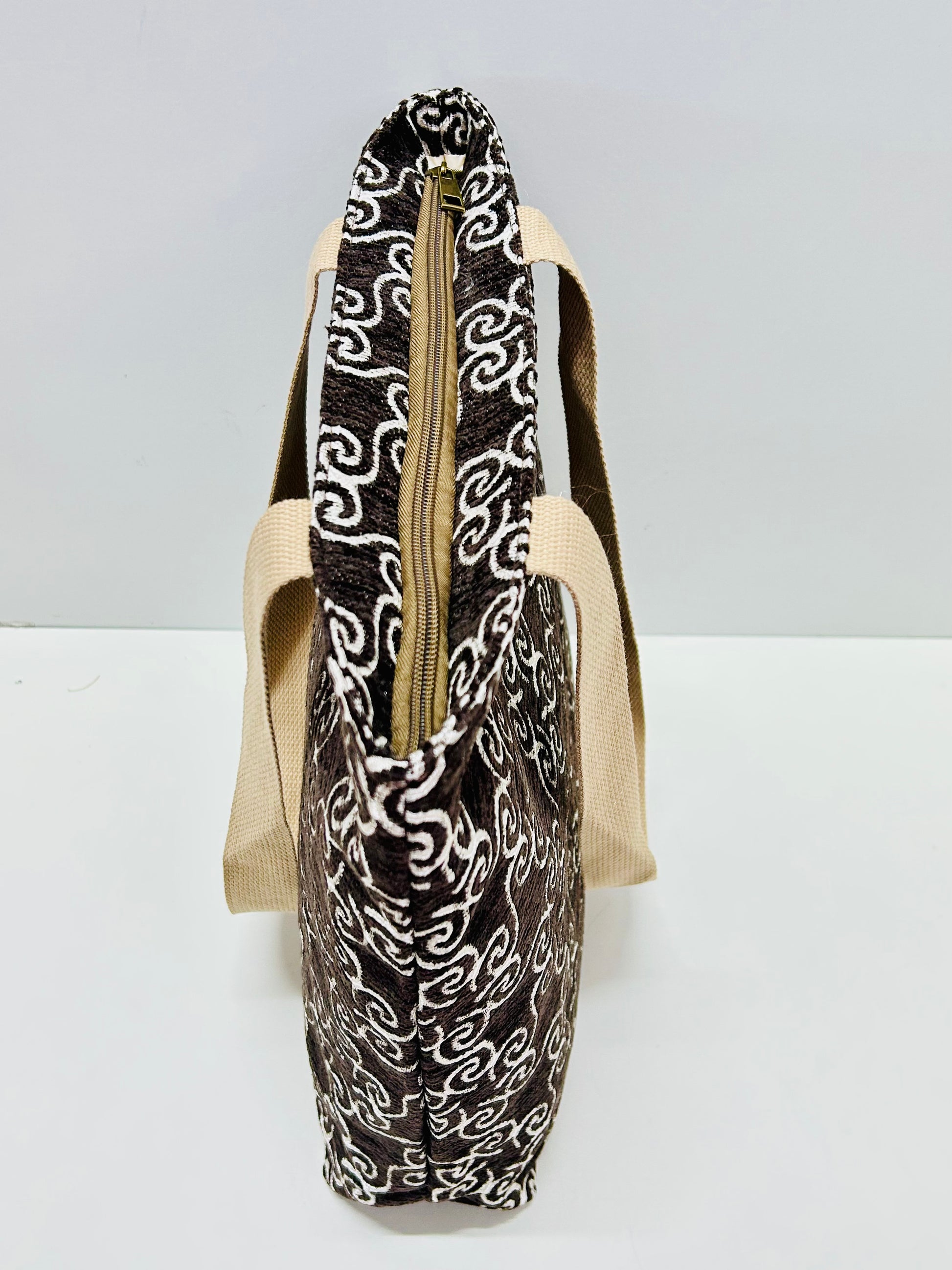 Bolsa Tote Bag Marrón Hilo Plata