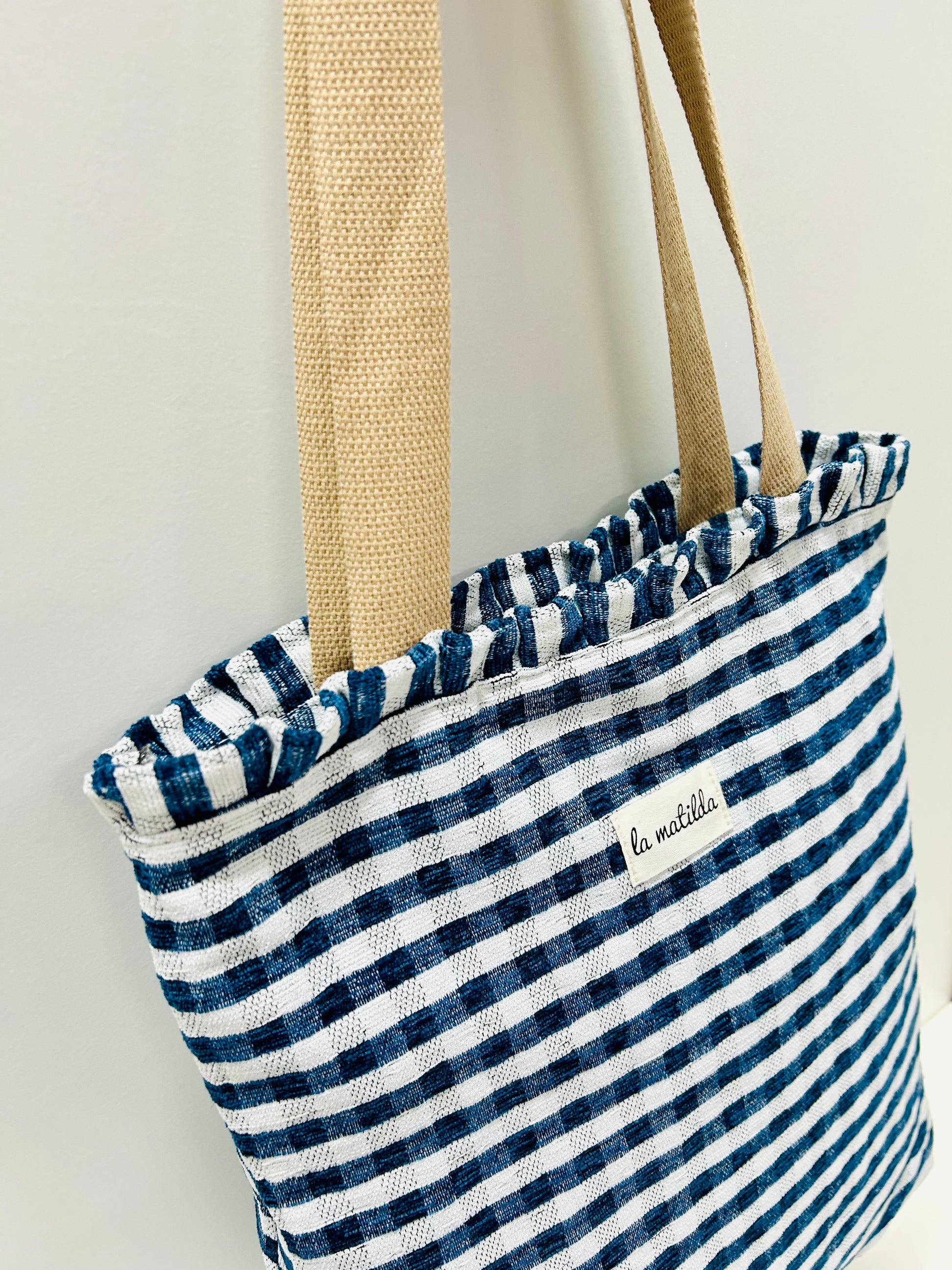Bolsa Tote Bag Volantes Gingham Azul Marino