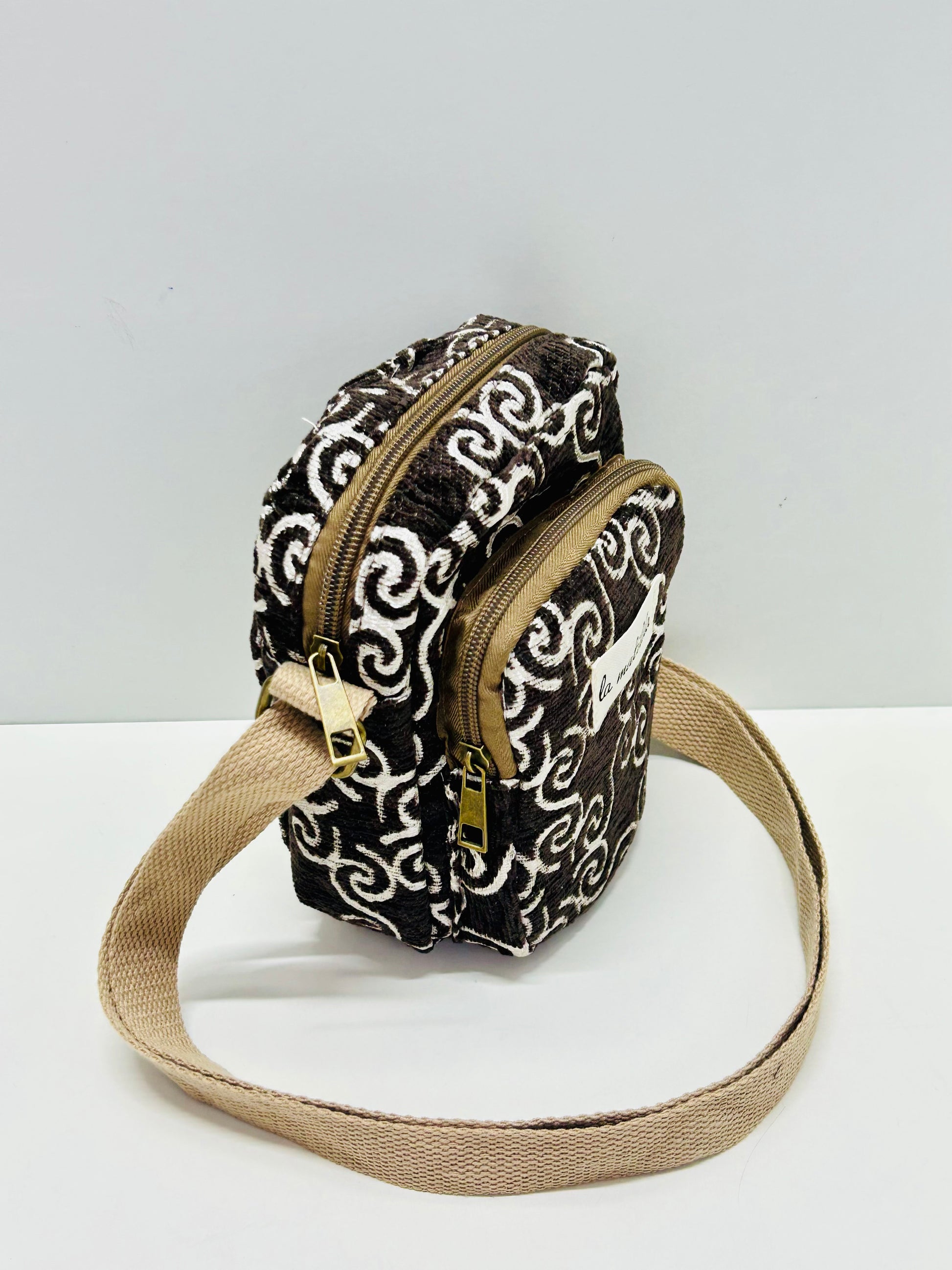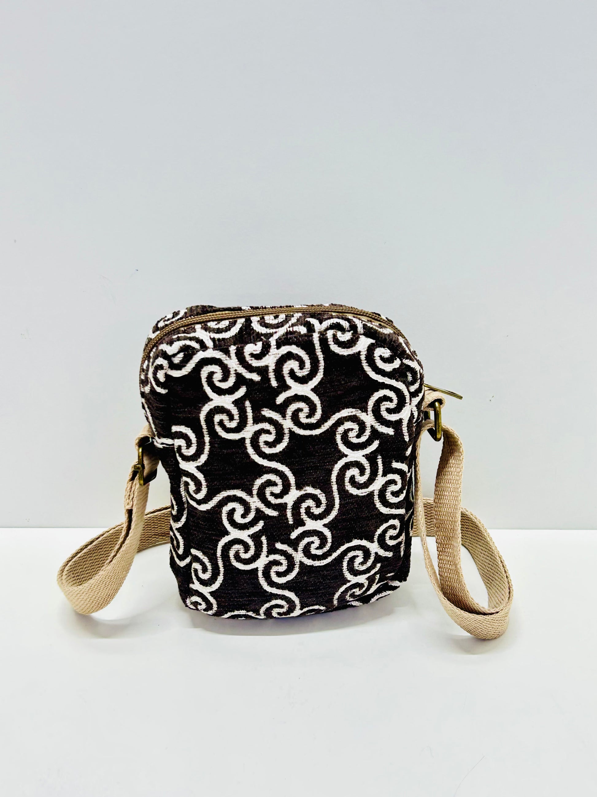 Bolso Cuelga Móvil marrón Hilo Plata