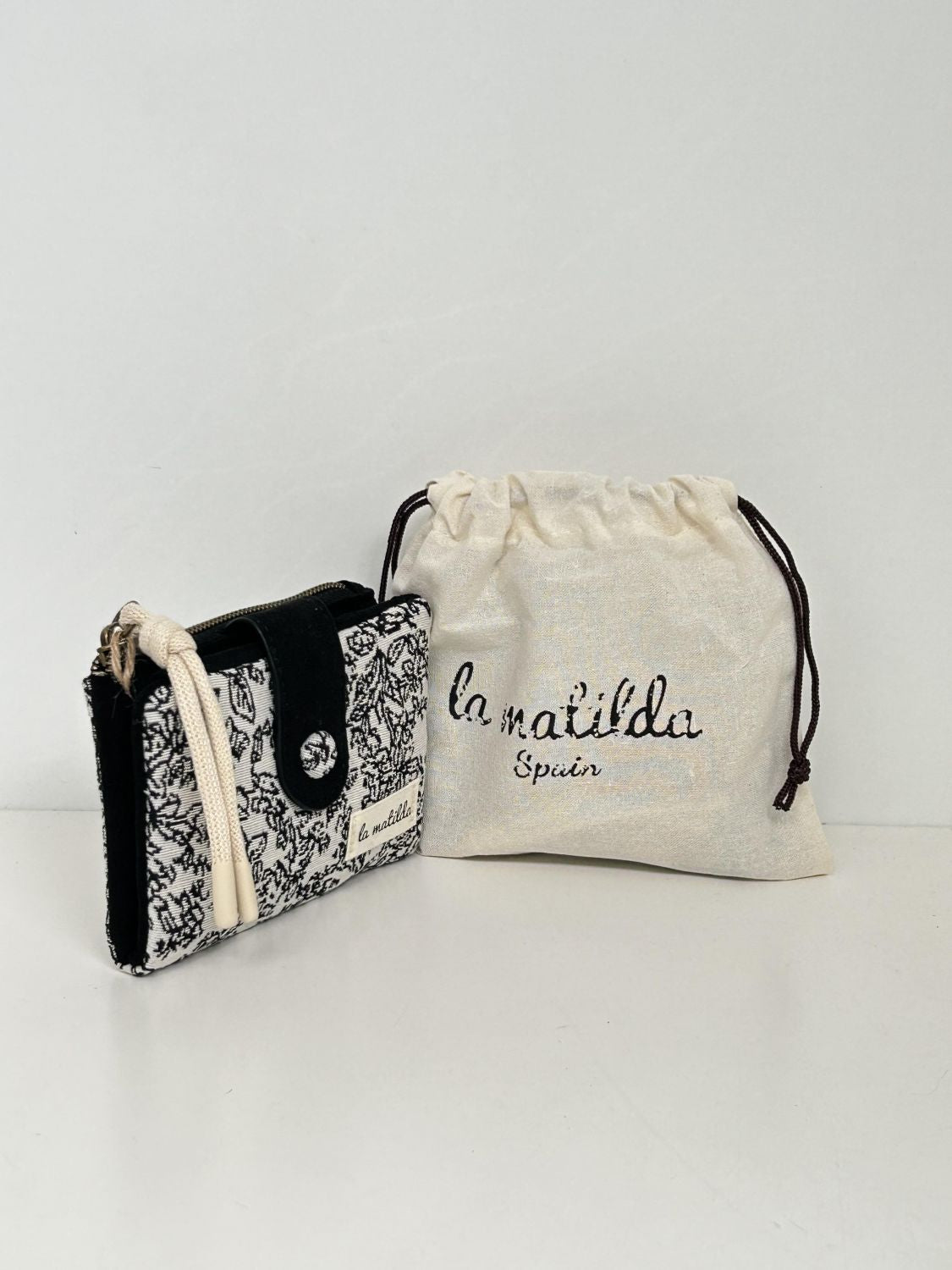 Cartera de tela con forro interior y cierre de cremallera. Ideal para billetes y tarjetas.