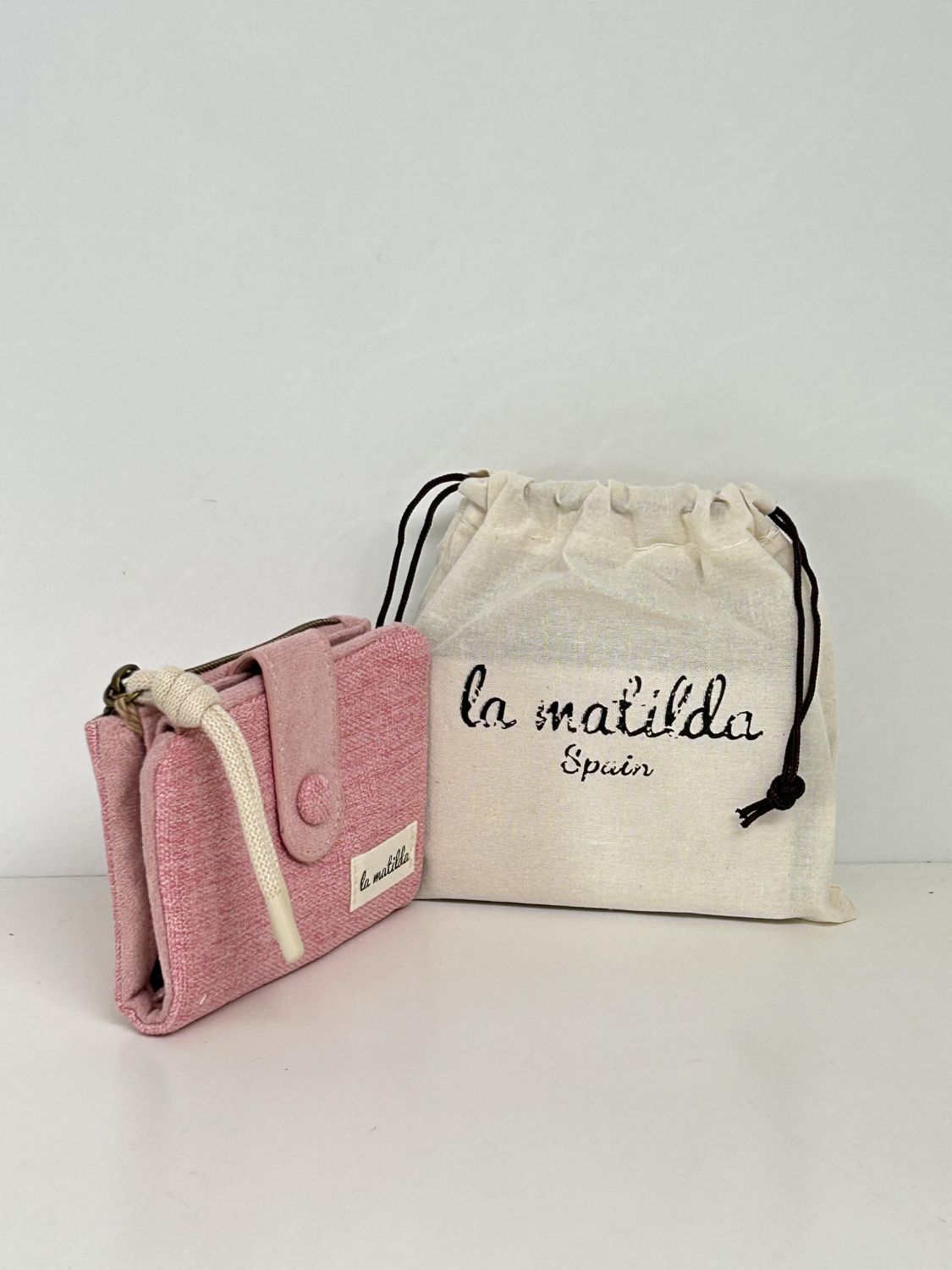 Cartera de tela con forro interior y cierre de cremallera. Ideal para billetes y tarjetas.