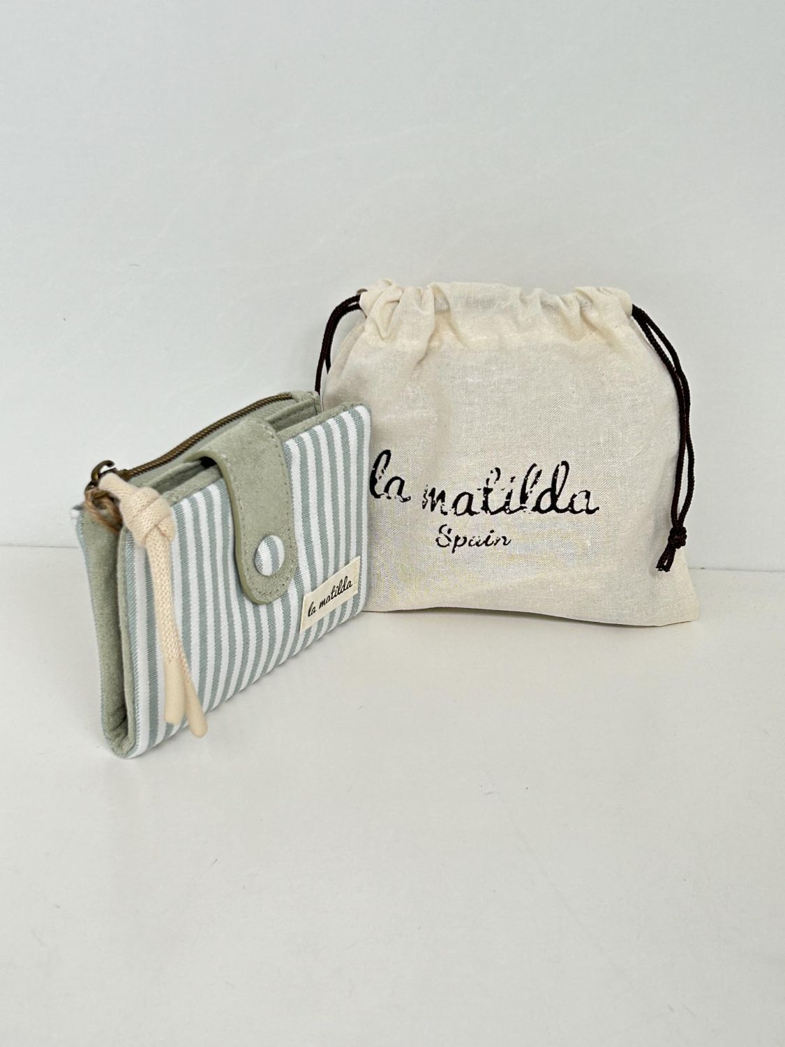 Cartera de tela con forro interior y cierre de cremallera. Ideal para billetes y tarjetas.