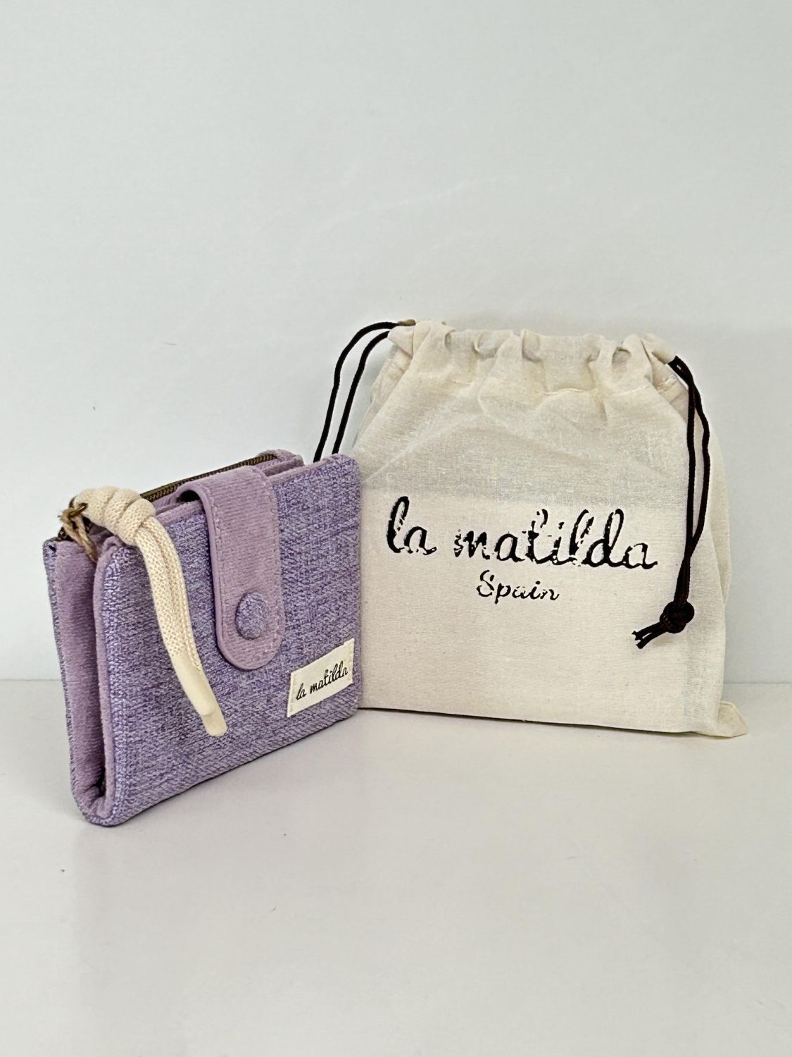 Cartera de tela con forro interior y cierre de cremallera. Ideal para billetes y tarjetas.