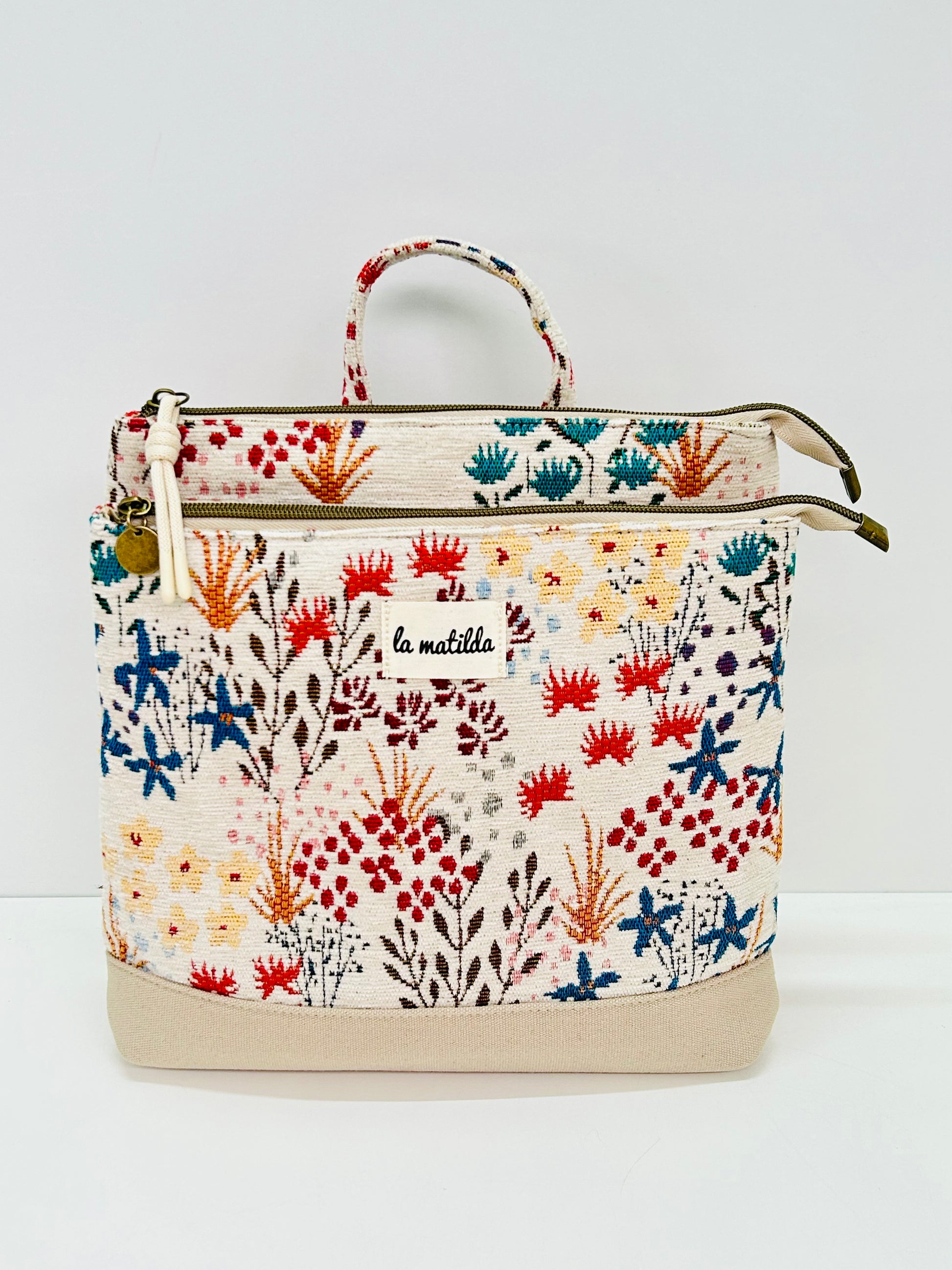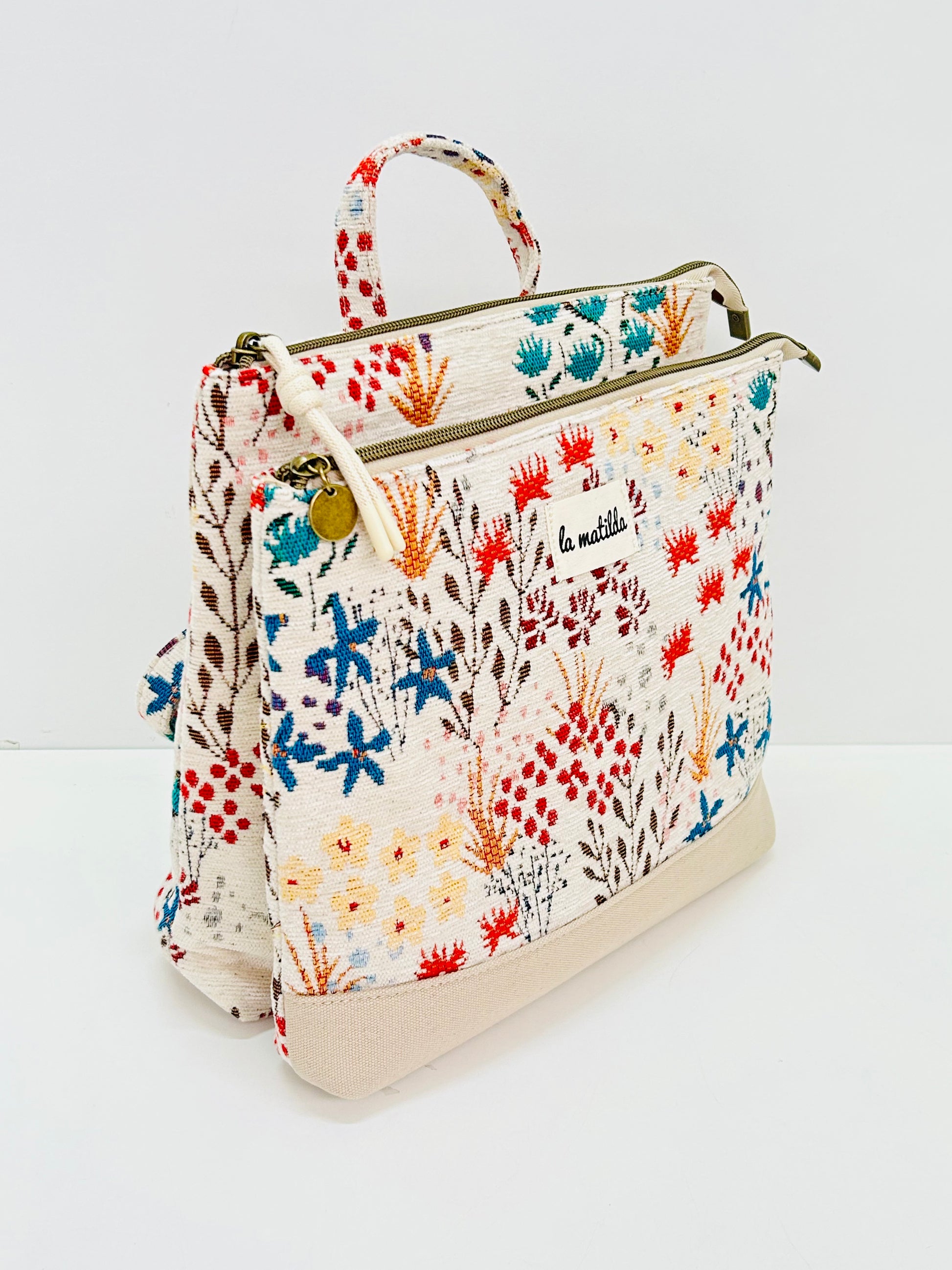 La mochila doble de la matilda destaca por su diseño práctico y su cuidada confección, pensada para acompañar el ritmo cotidiano con estilo. Su estructura reforzada mantiene la forma mientras que el cierre superior con cremallera asegura el contenido en todo momento. Incorpora interior, forro, un compartimento posterior con cremallera y un asa superior que facilita su manejo.