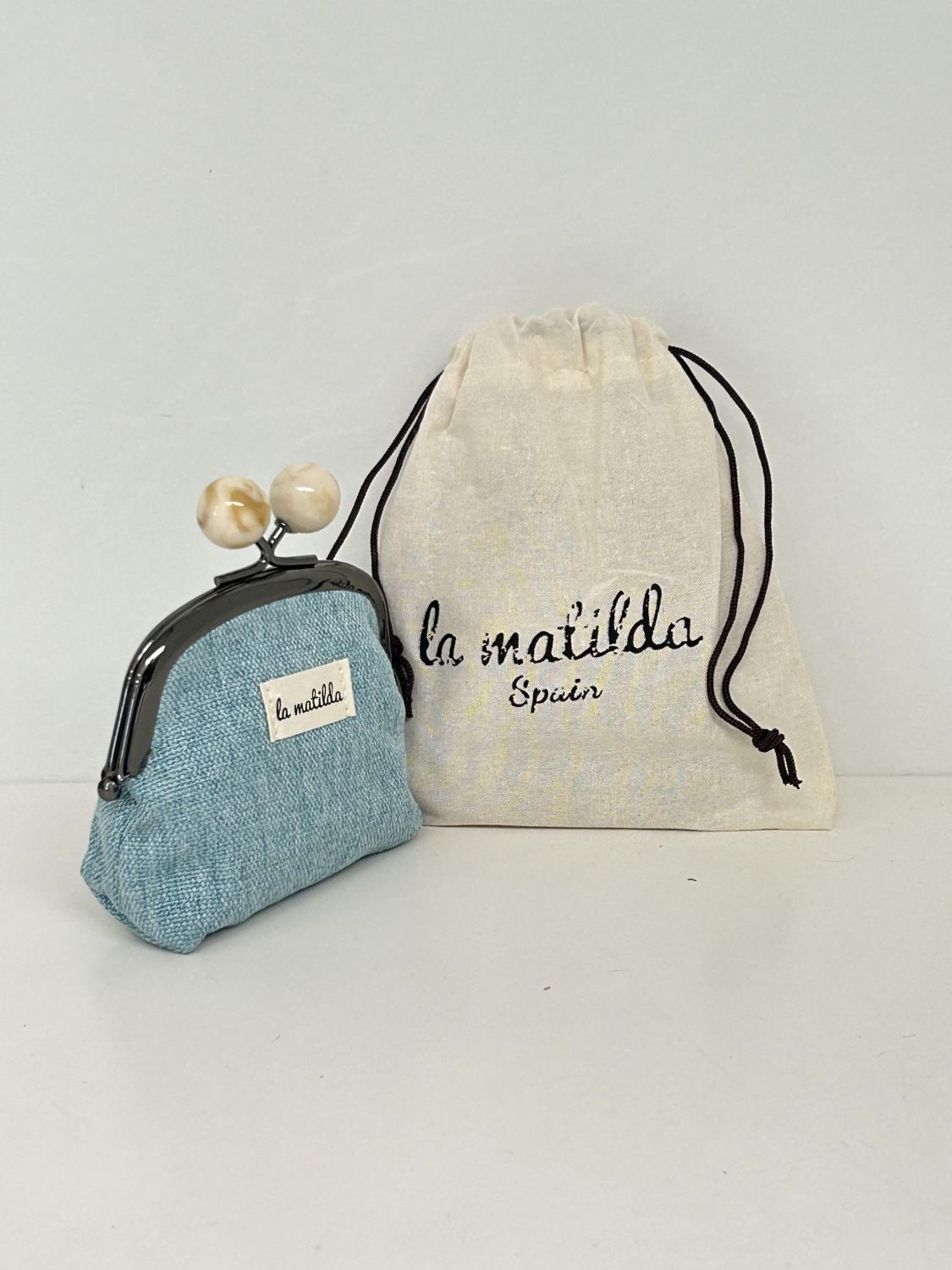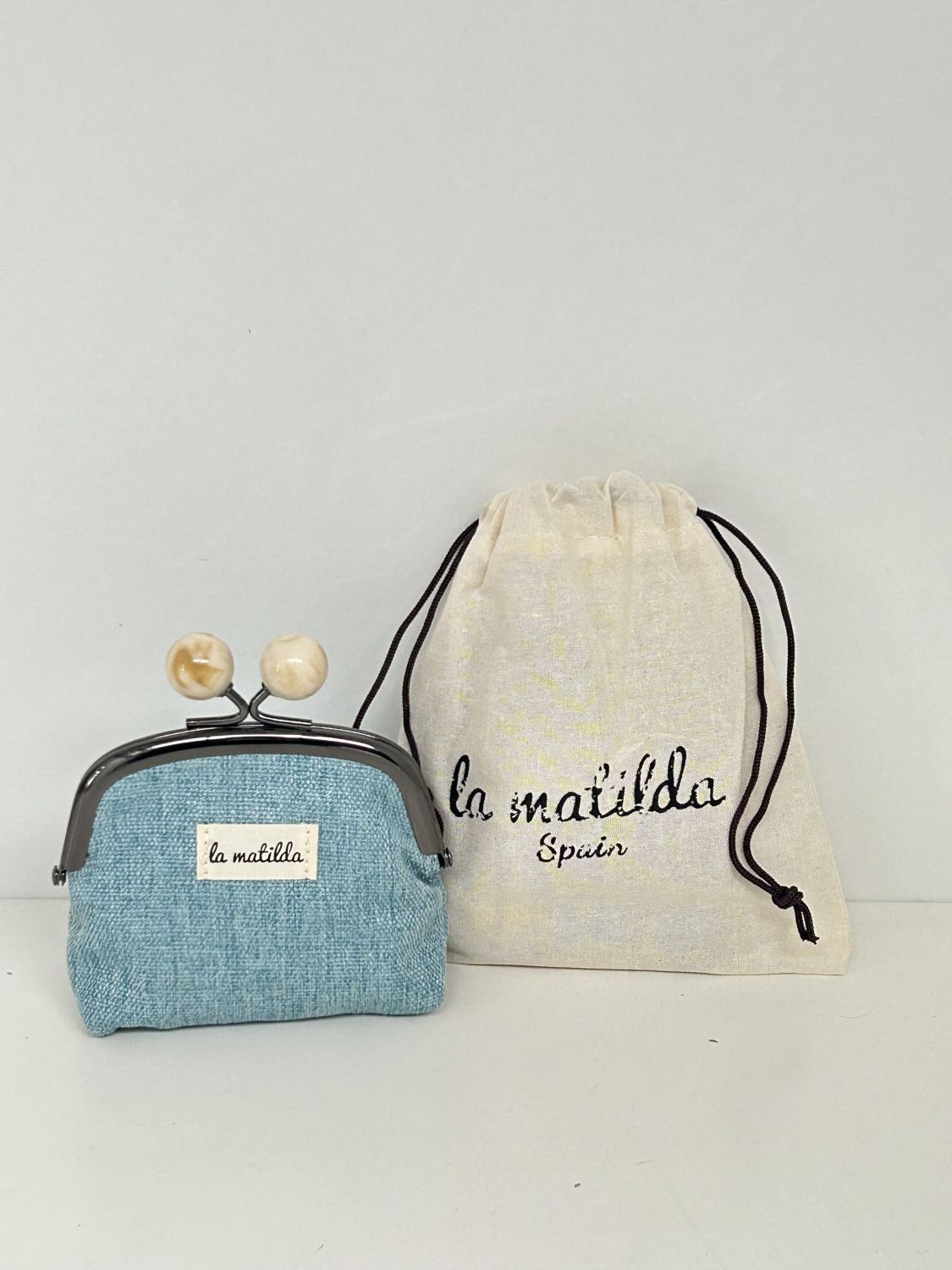 Monedero de Boquilla con Cierre de Bolas Unicolor Celeste