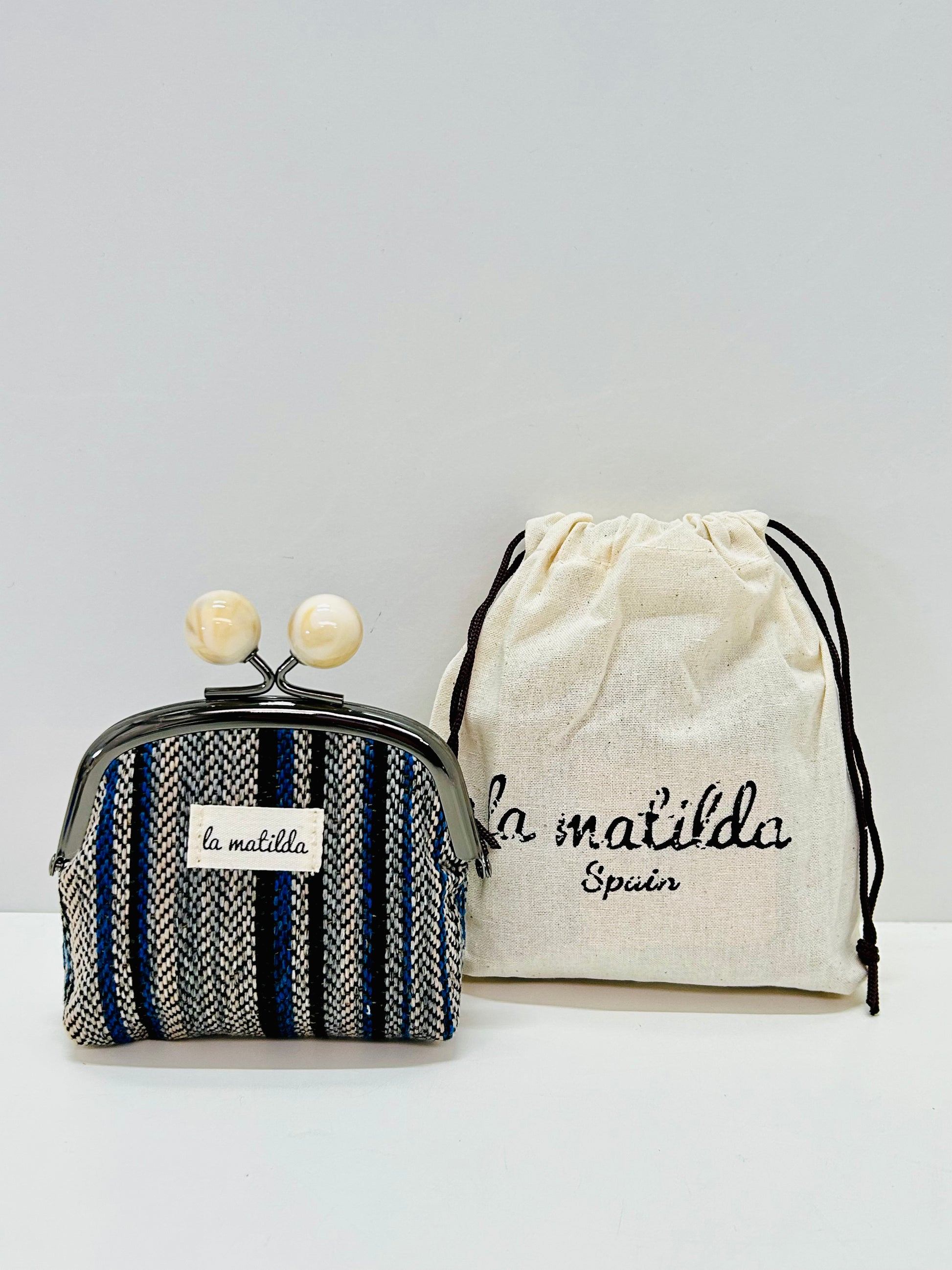 Monedero de tela con forro interior y estampado propio. Ideal para guardar monedas y pequeños accesorios.