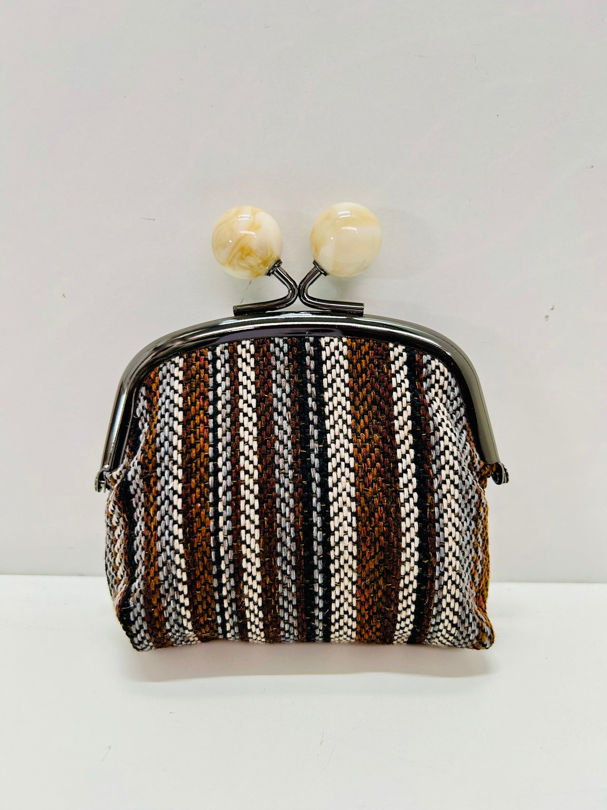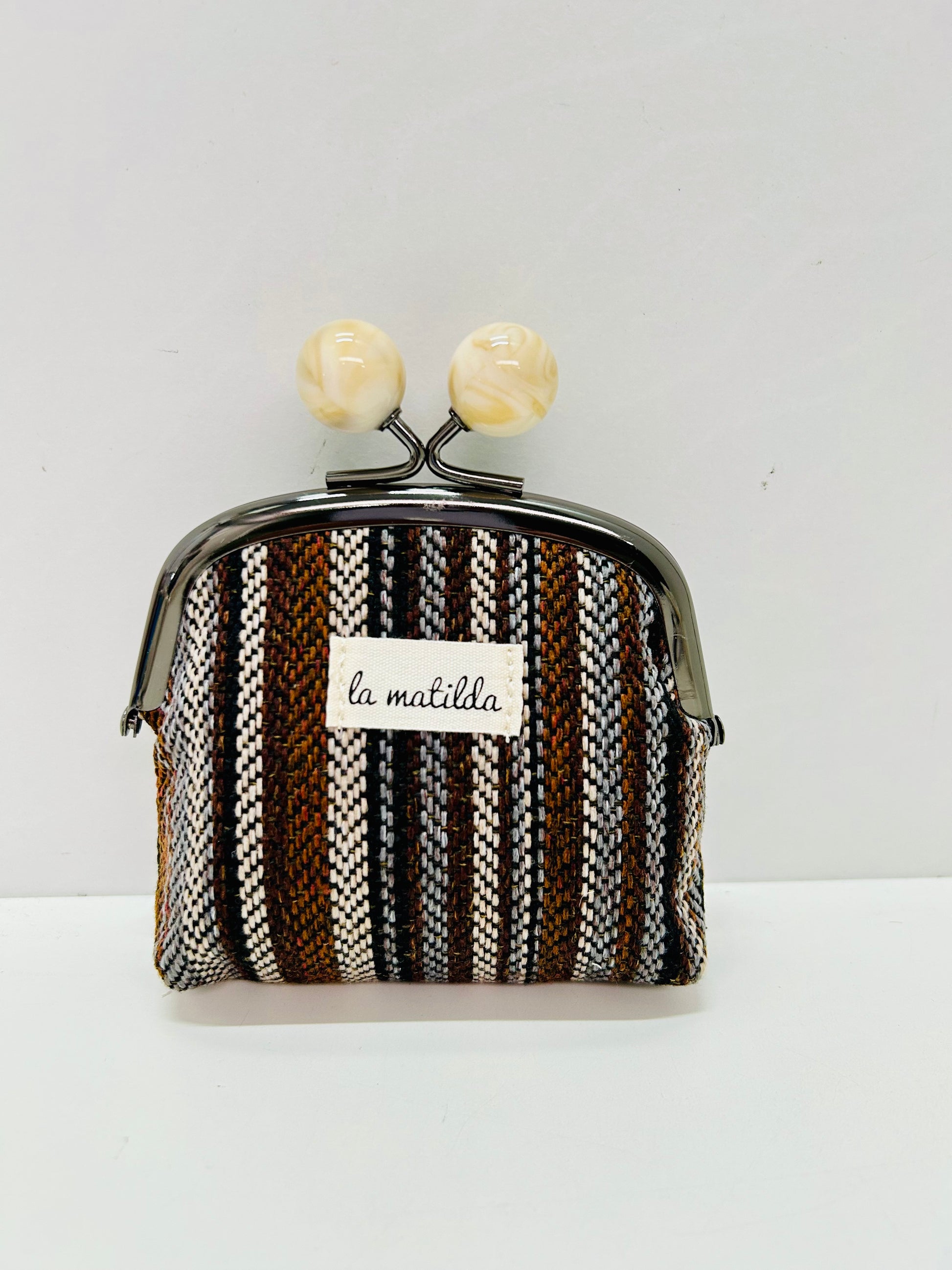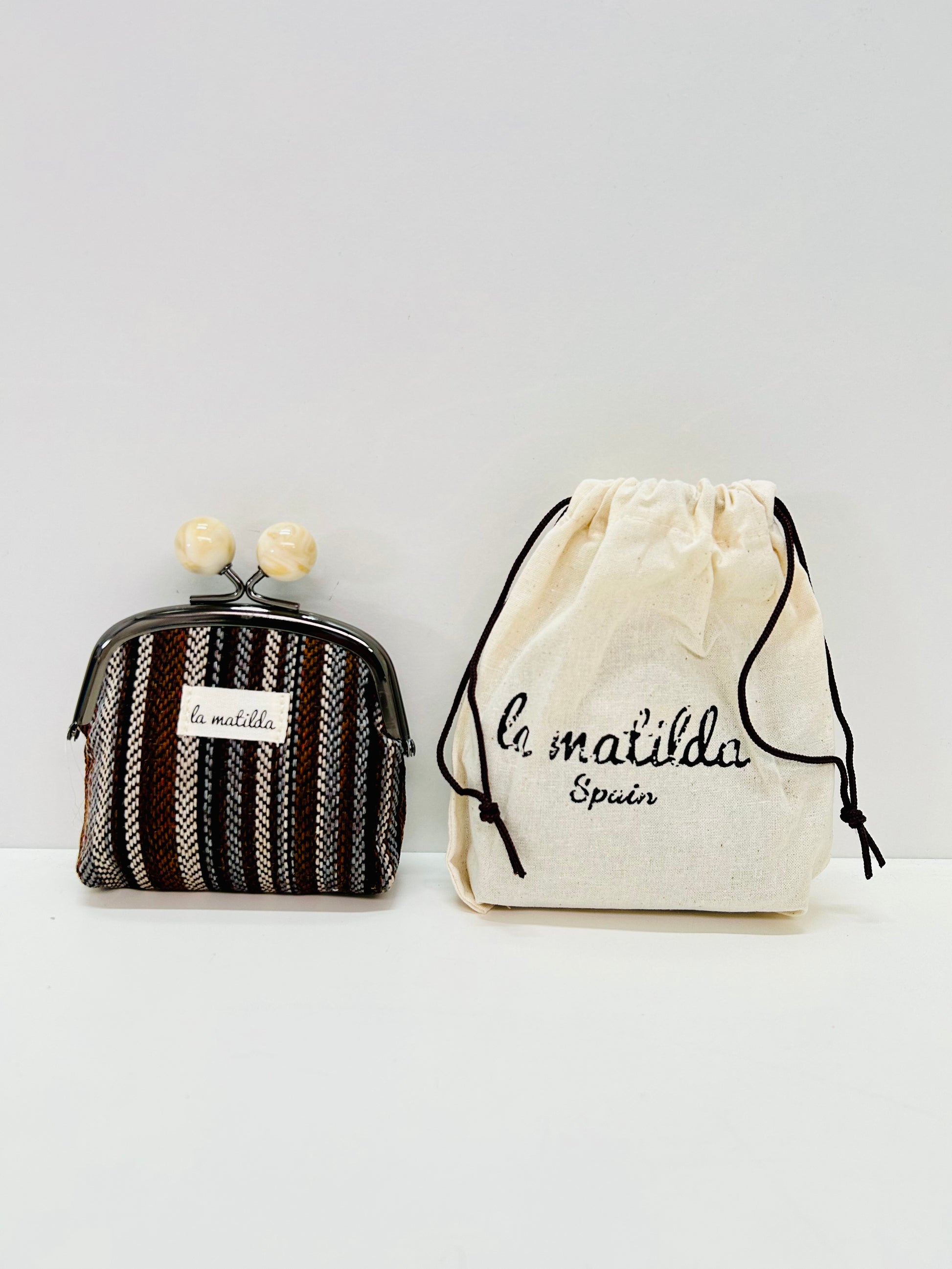 Monedero de tela con forro interior y estampado propio. Ideal para guardar monedas y pequeños accesorios.