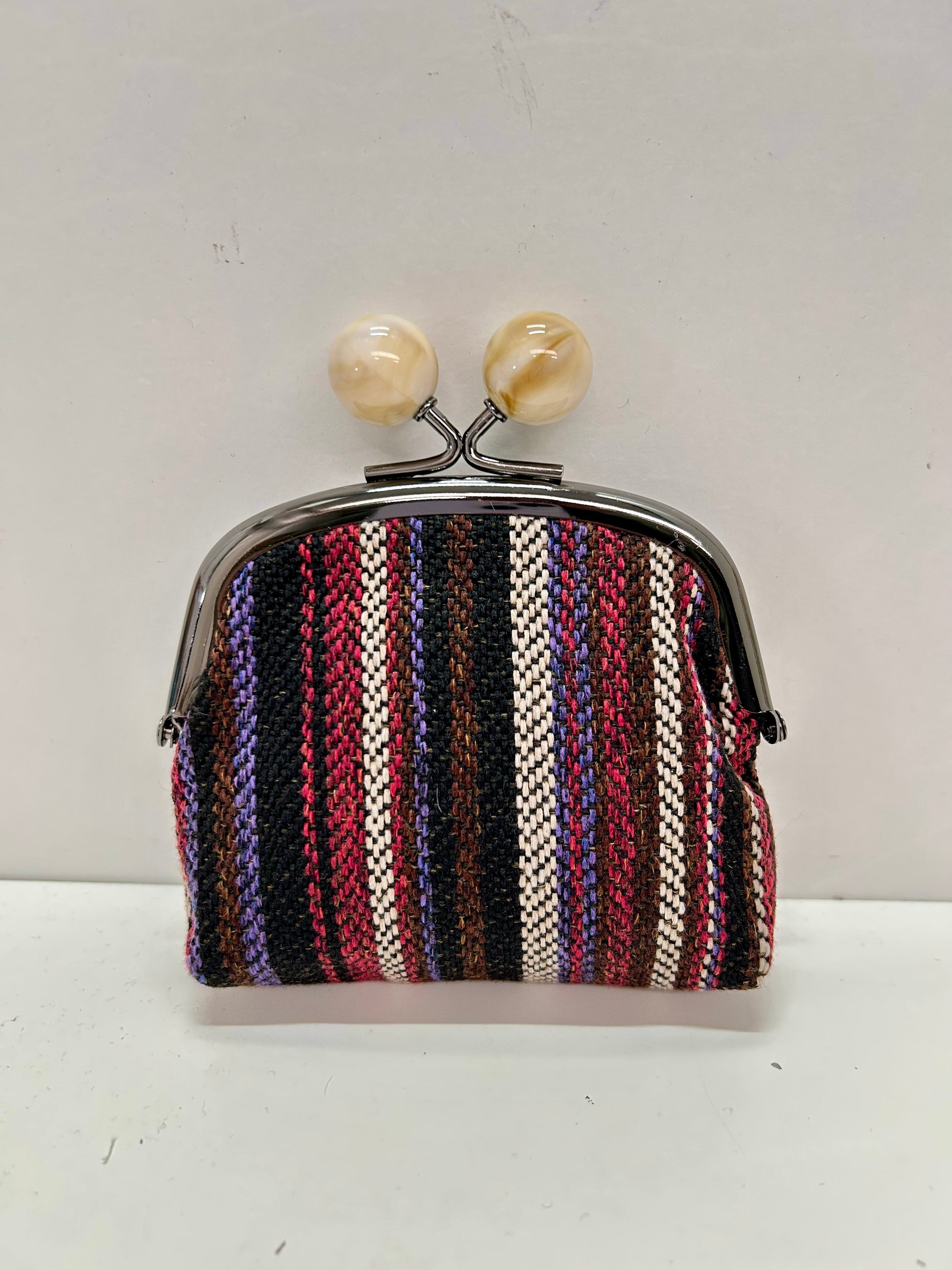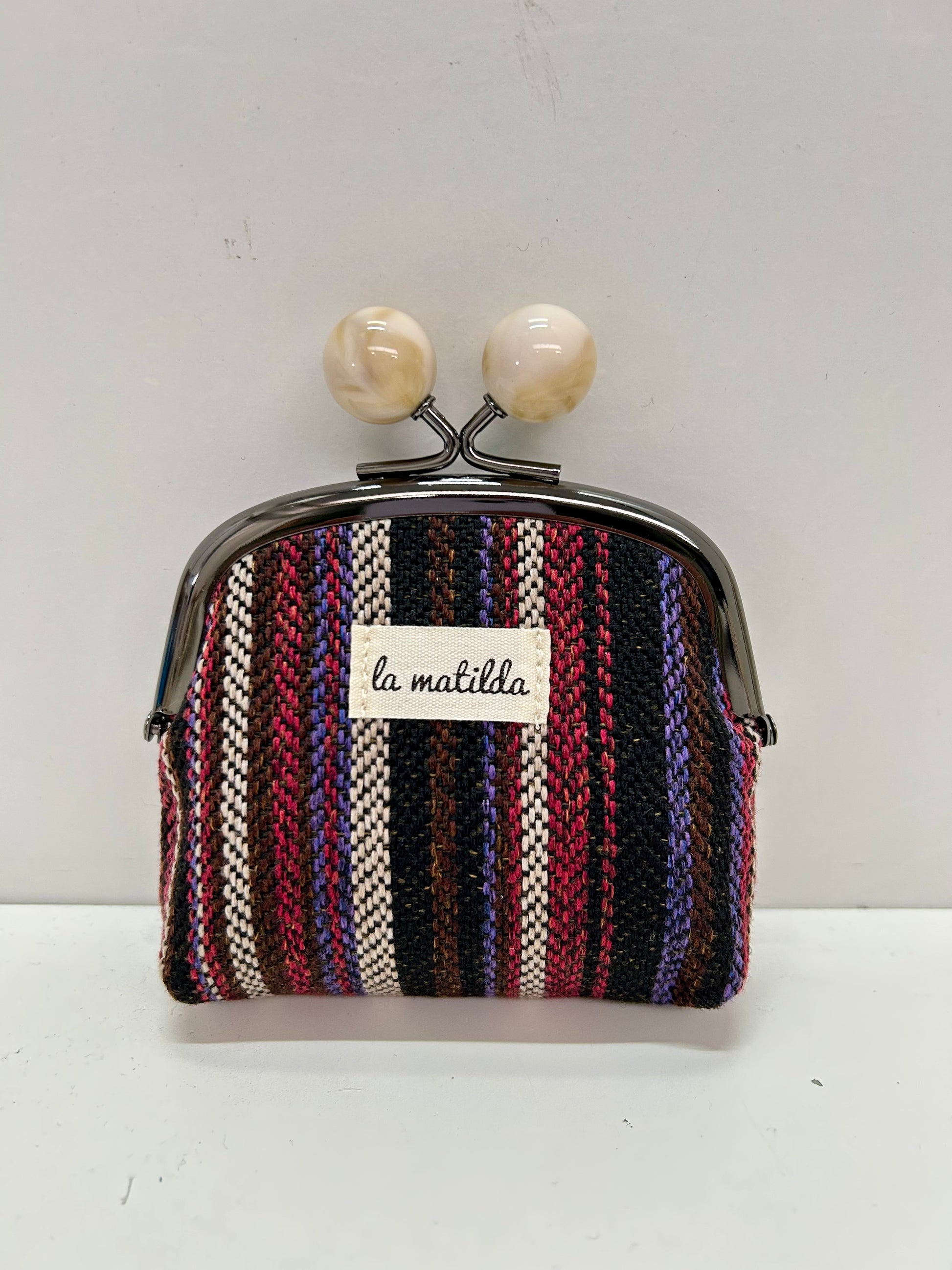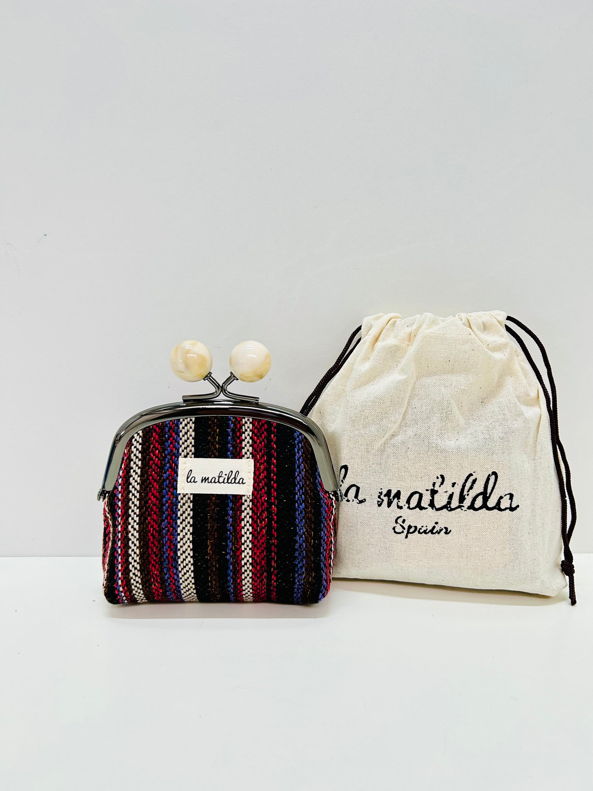 Monedero de tela con forro interior y estampado propio. Ideal para guardar monedas y pequeños accesorios.