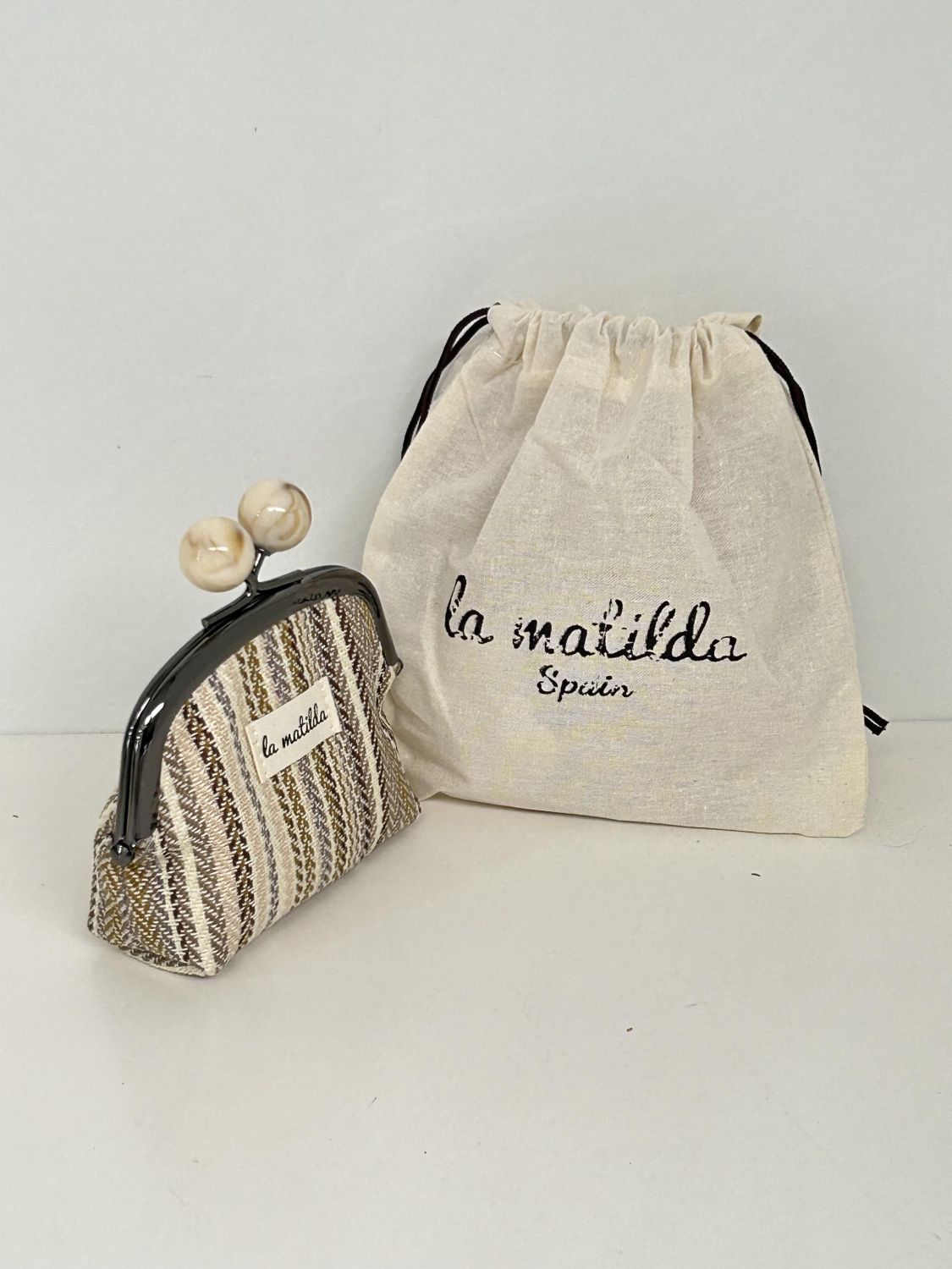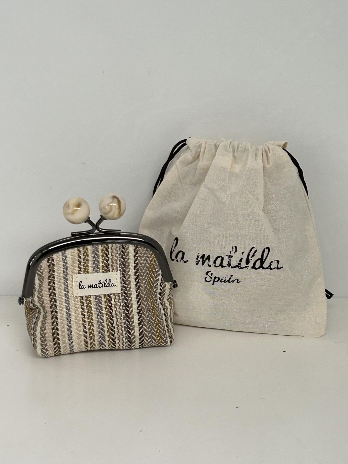 Monedero de tela con forro interior y estampado propio. Ideal para guardar monedas y pequeños accesorios.