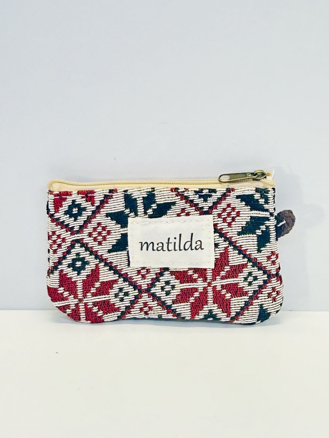 Monedero con cierre de cremallera y asa o correa. Ideal para guardar monedas y pequeños accesorios.