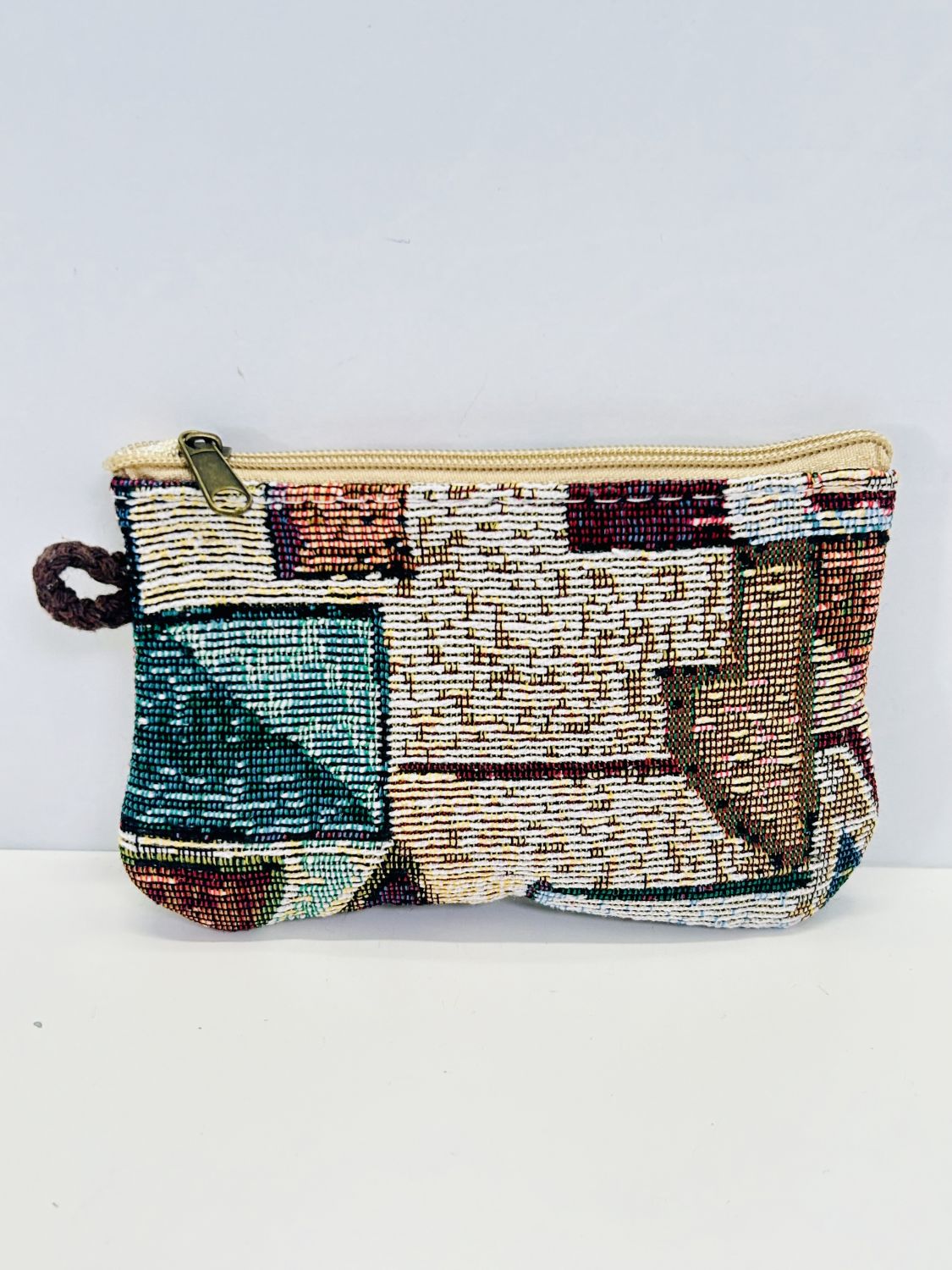 Monedero con cierre de cremallera y asa o correa. Ideal para guardar monedas y pequeños accesorios.