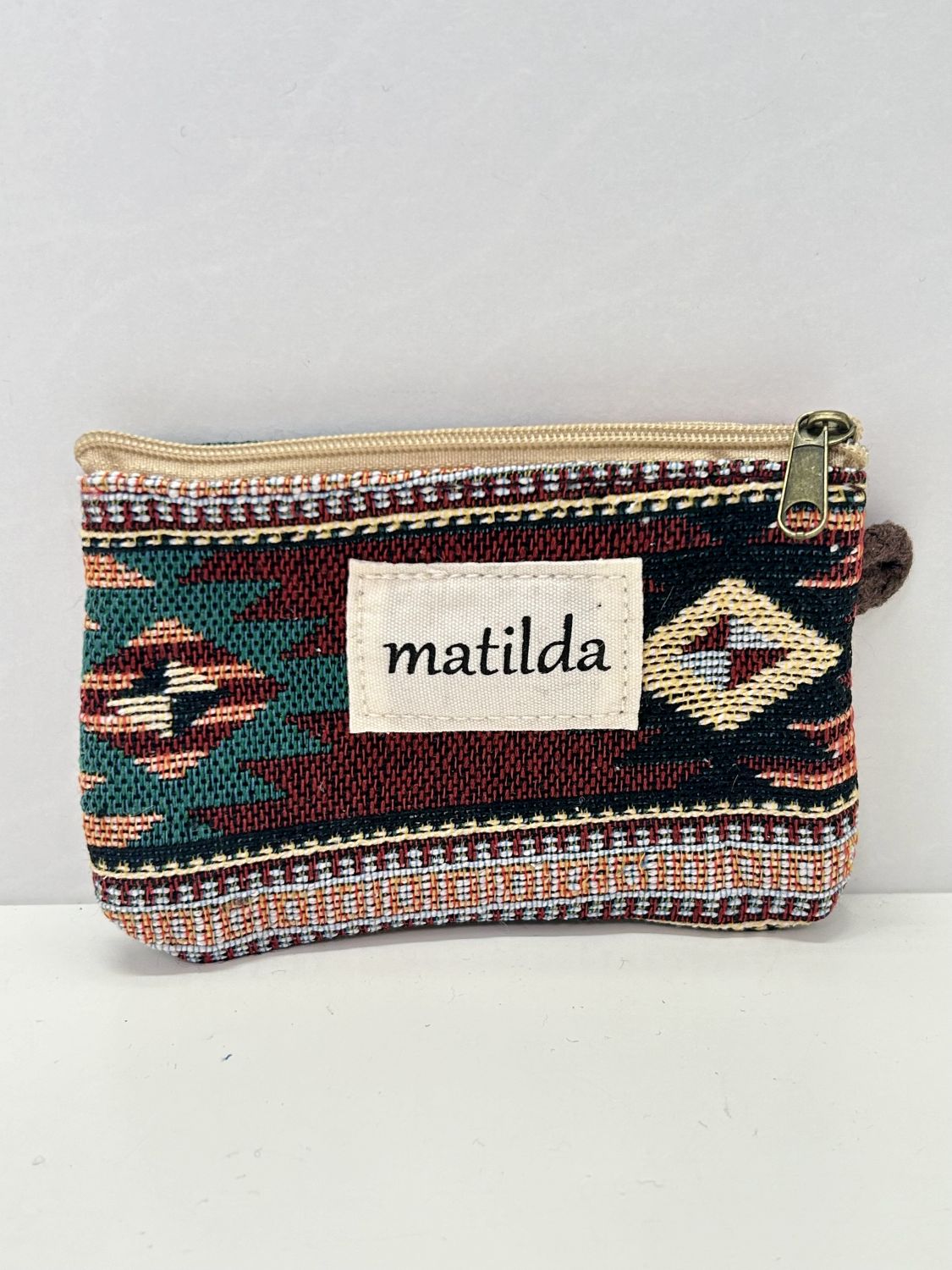 Monedero con cierre de cremallera y asa o correa. Ideal para guardar monedas y pequeños accesorios.