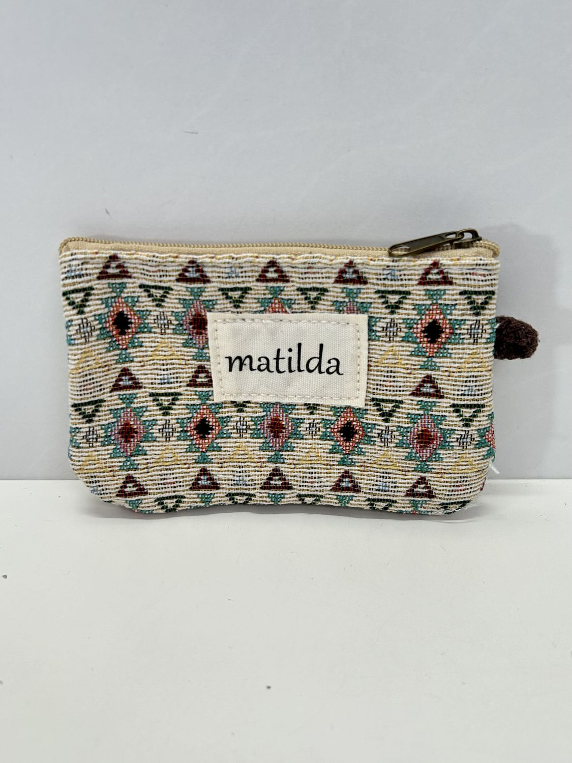 Monedero con cierre de cremallera y asa o correa. Ideal para guardar monedas y pequeños accesorios.