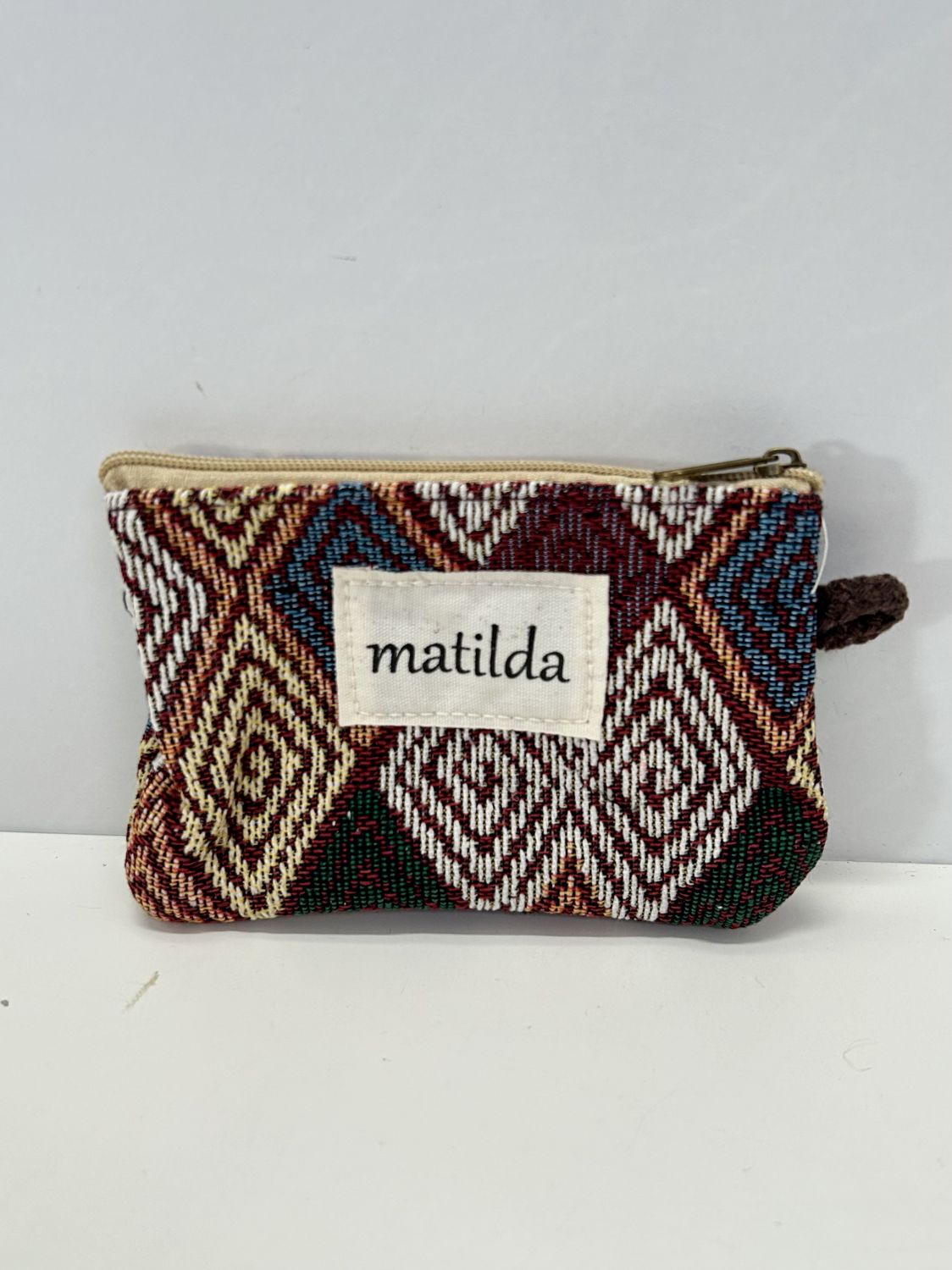 Monedero con cierre de cremallera y asa o correa. Ideal para guardar monedas y pequeños accesorios.