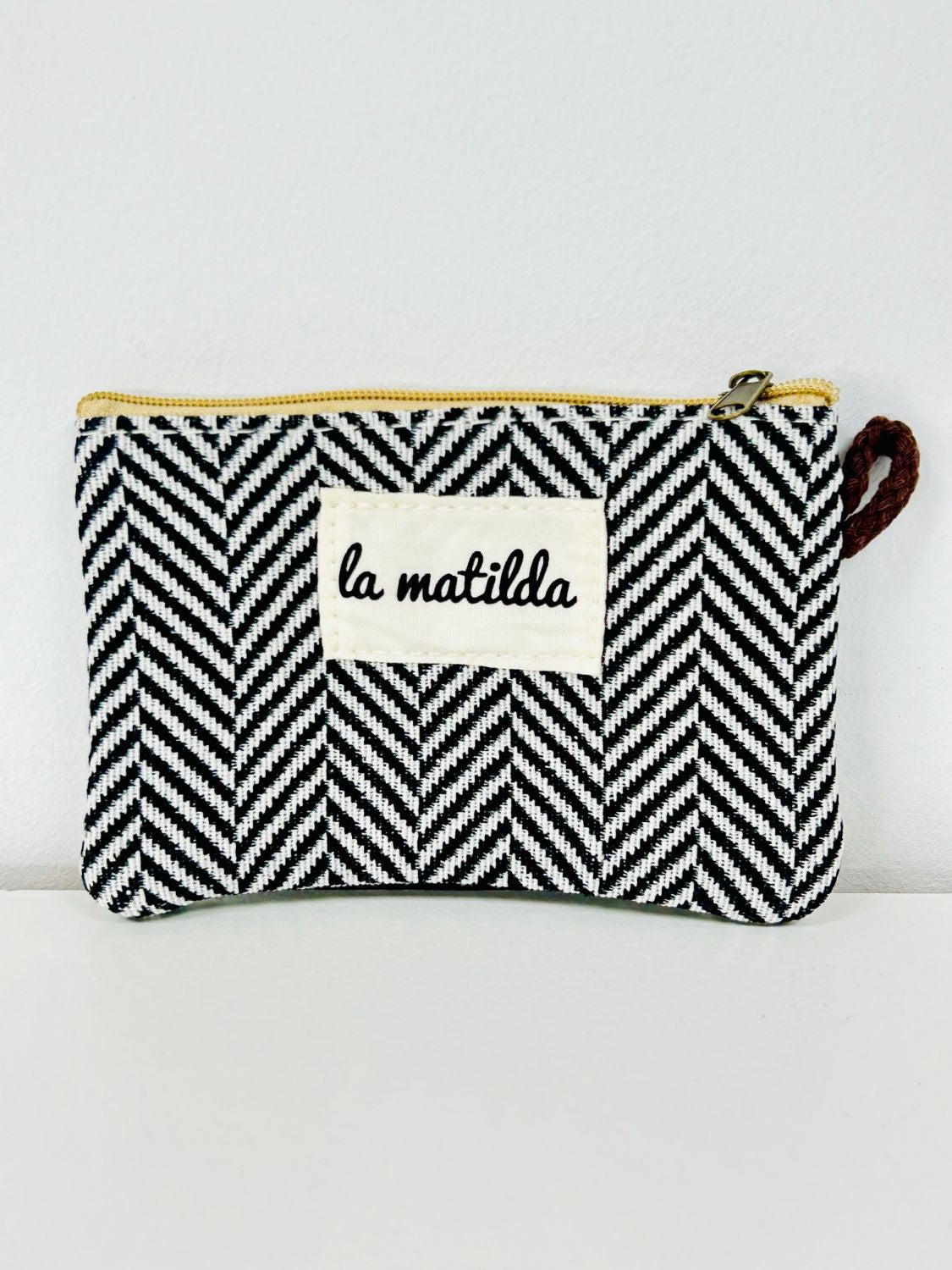 Monedero con cierre de cremallera y asa o correa. Ideal para guardar monedas y pequeños accesorios.