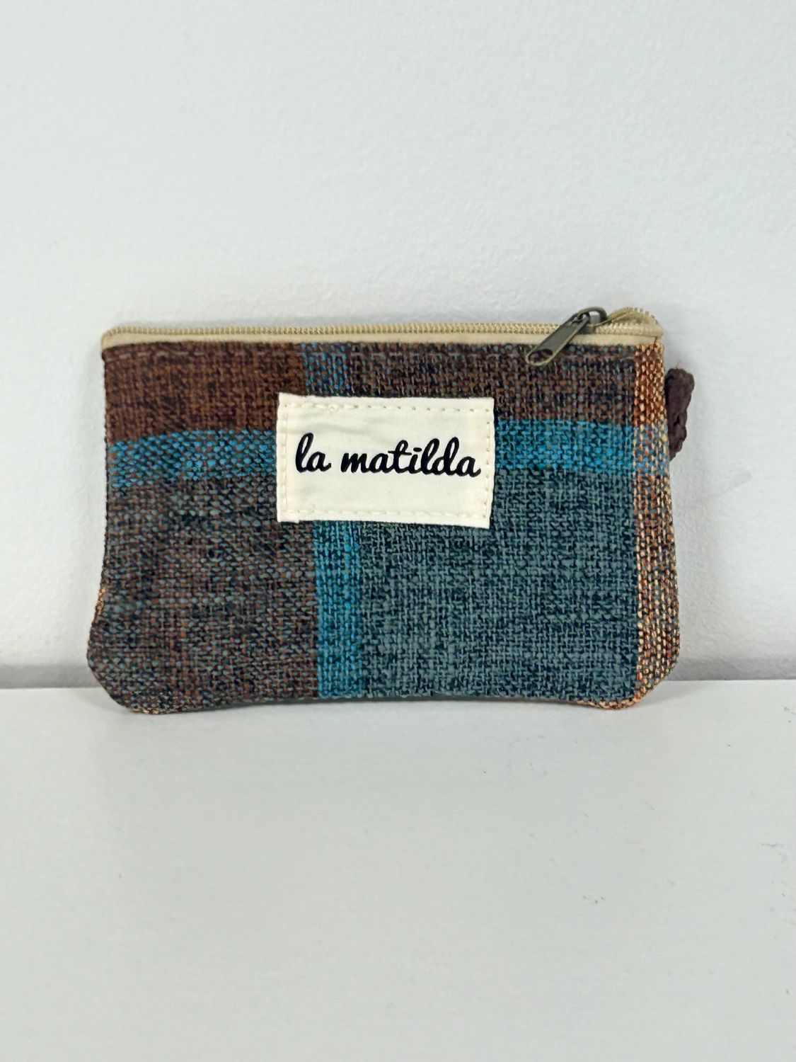 Monedero con cierre de cremallera y asa o correa. Ideal para guardar monedas y pequeños accesorios.