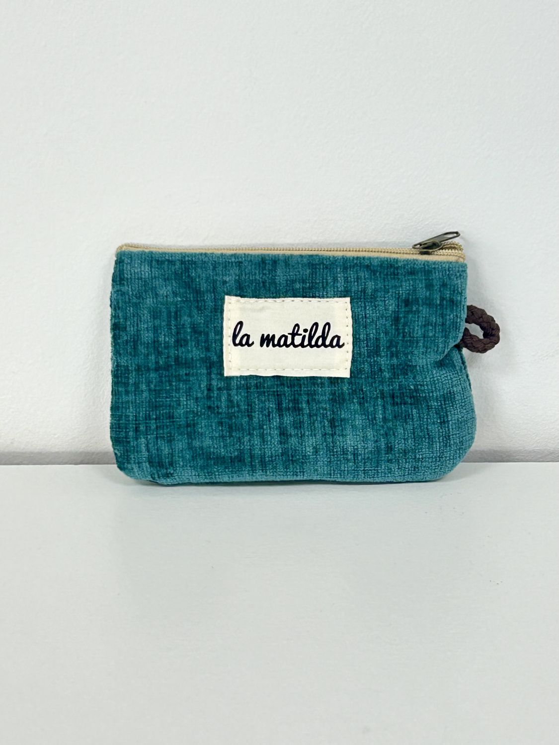 Monedero con cierre de cremallera y asa o correa. Ideal para guardar monedas y pequeños accesorios.