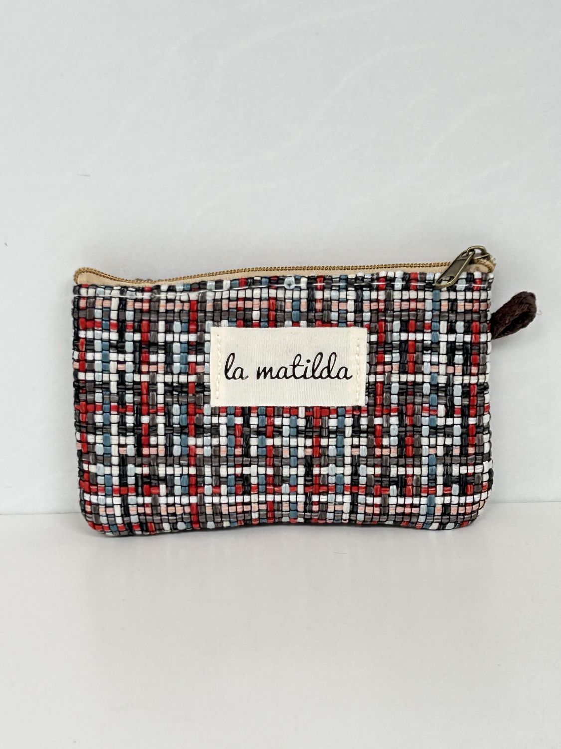 Monedero con cierre de cremallera y asa o correa. Ideal para guardar monedas y pequeños accesorios.