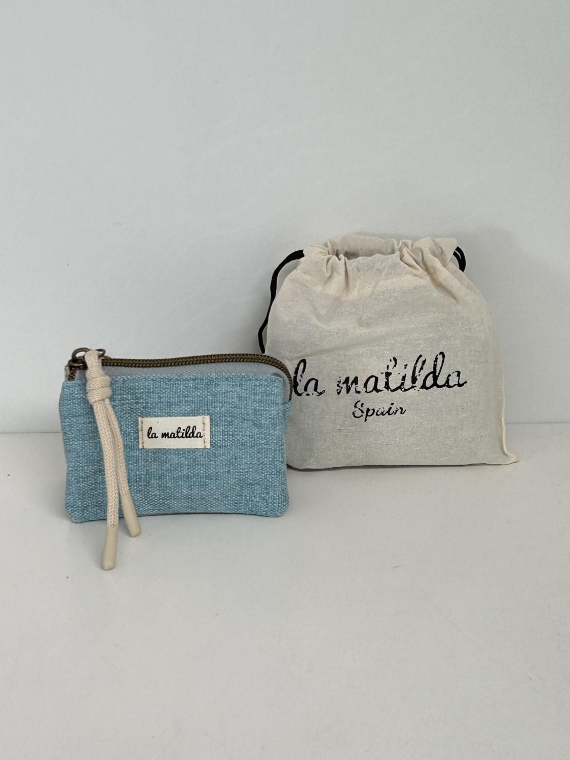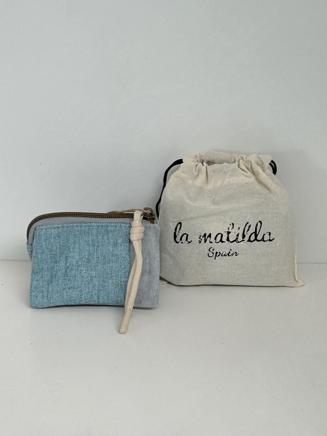 Monedero de tela con forro interior y cierre de cremallera. Ideal para guardar monedas y pequeños accesorios.