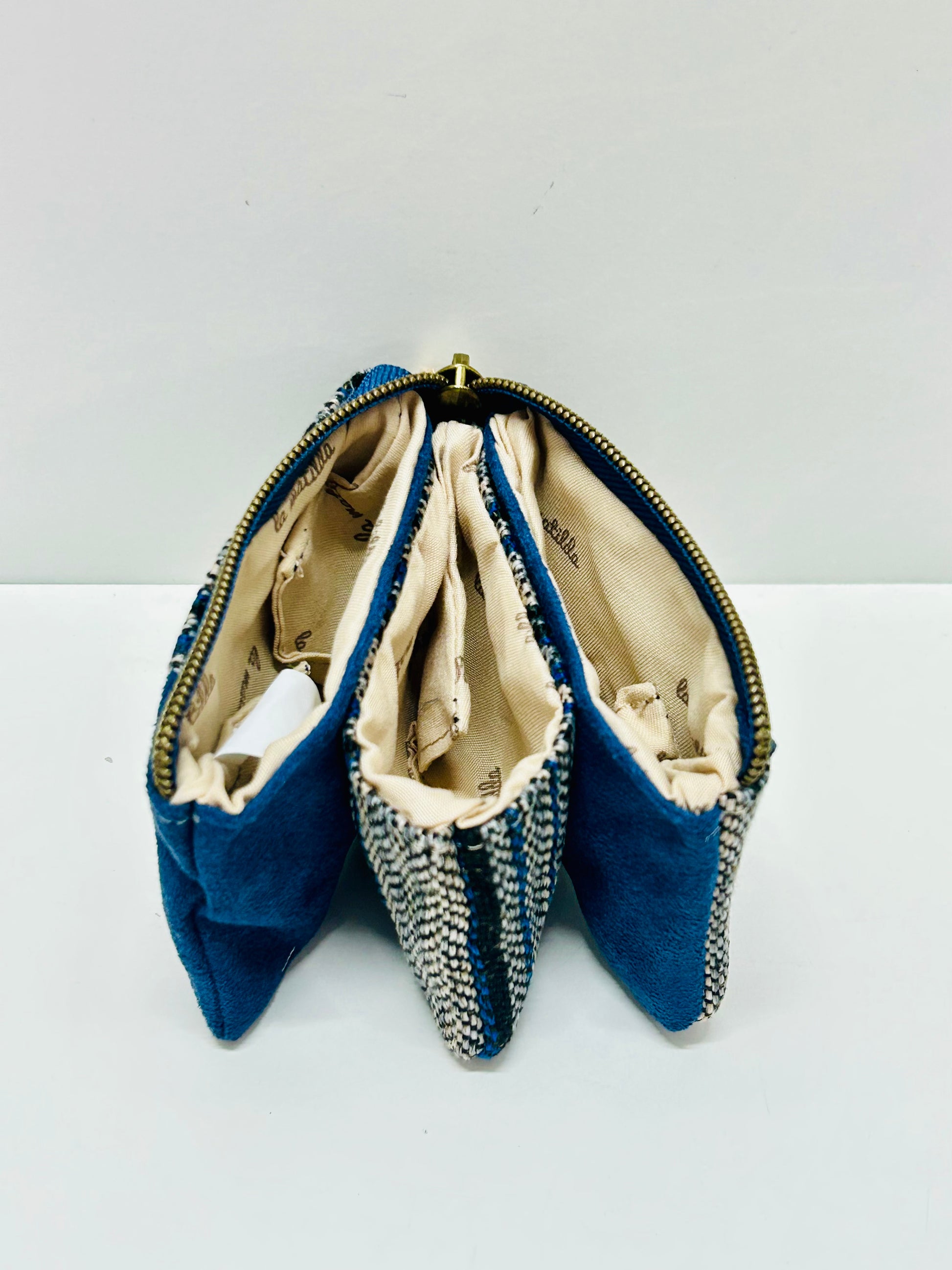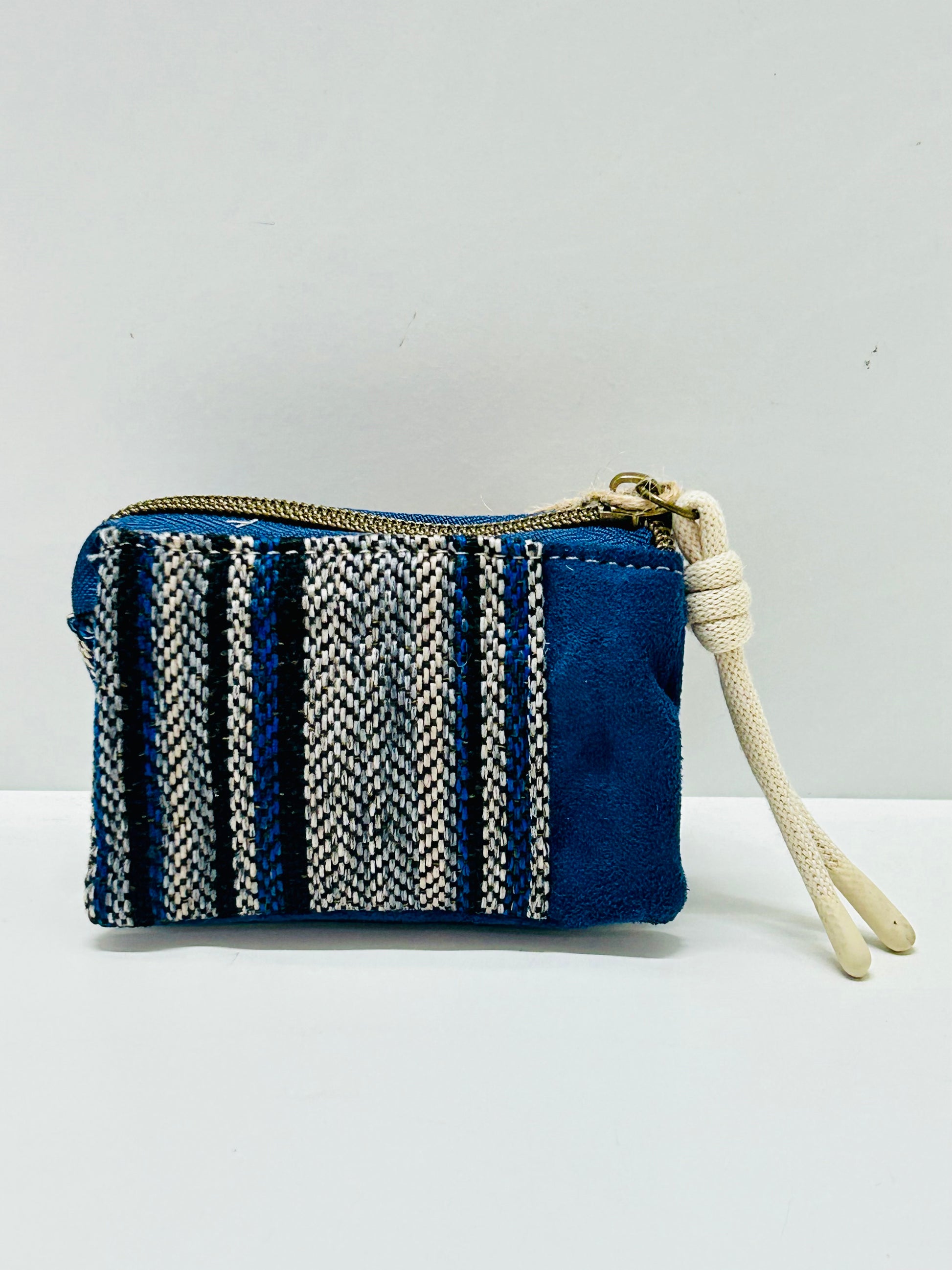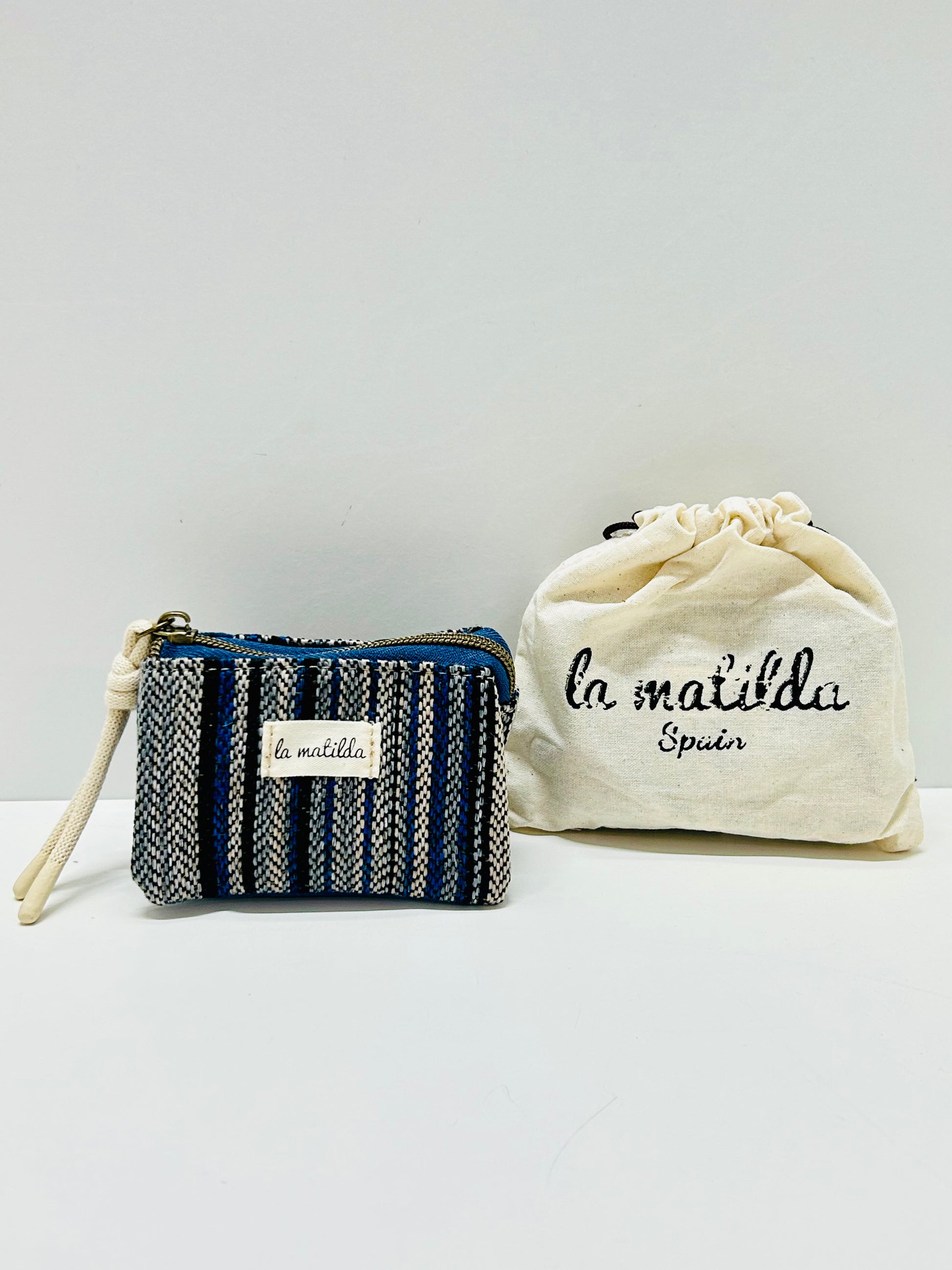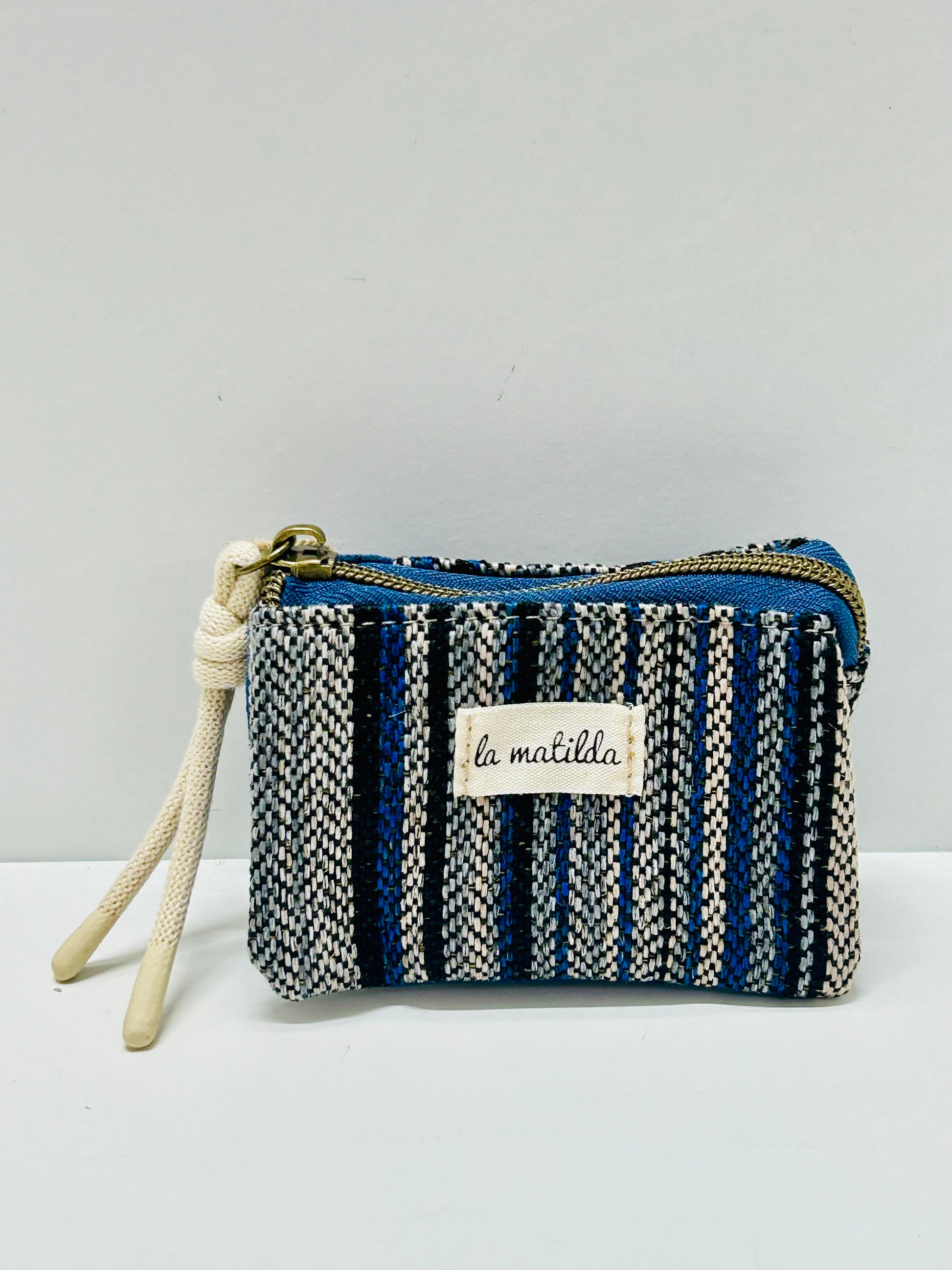 Monedero de tela con forro interior y cierre de cremallera. Ideal para guardar monedas y pequeños accesorios.
