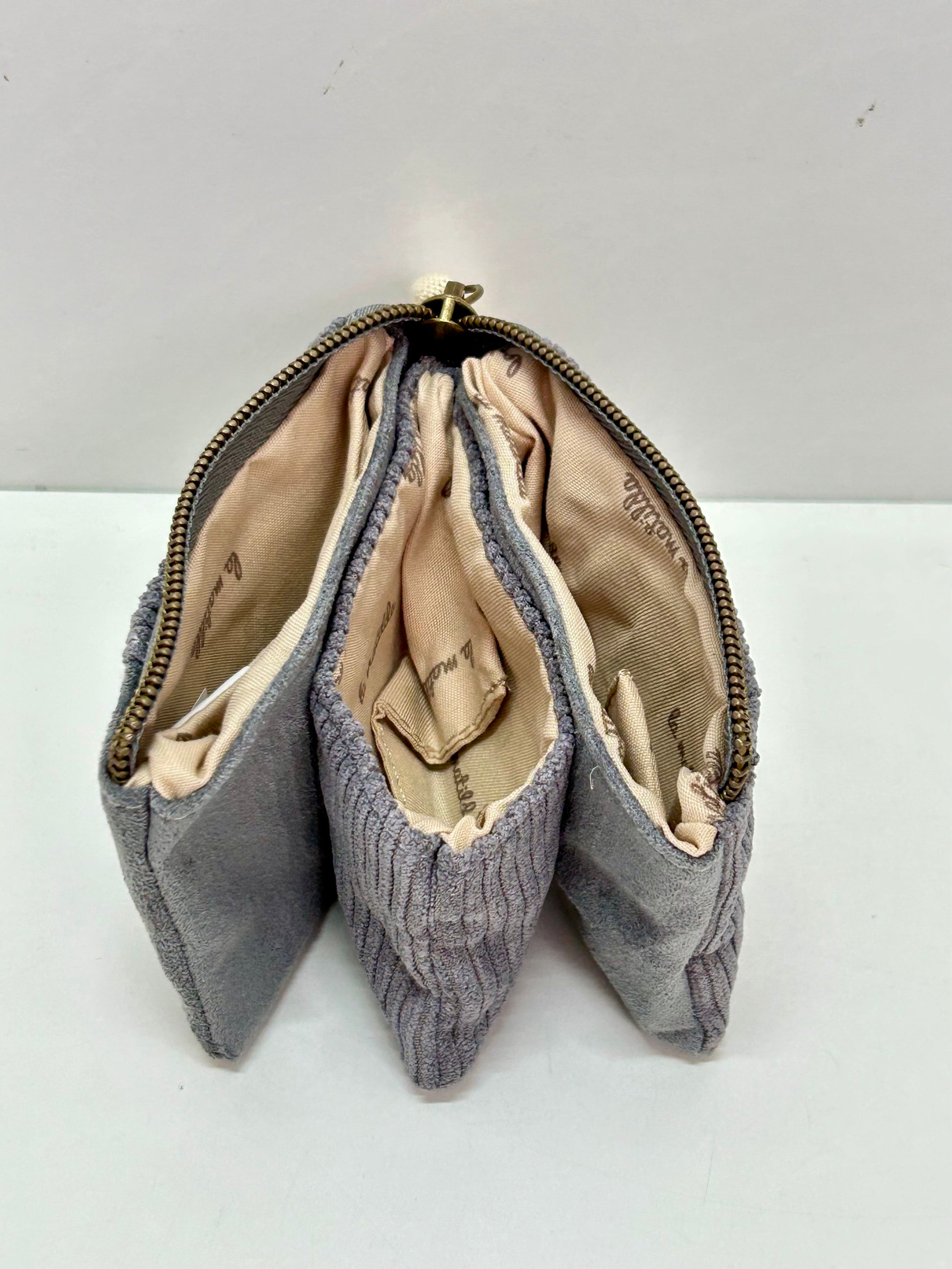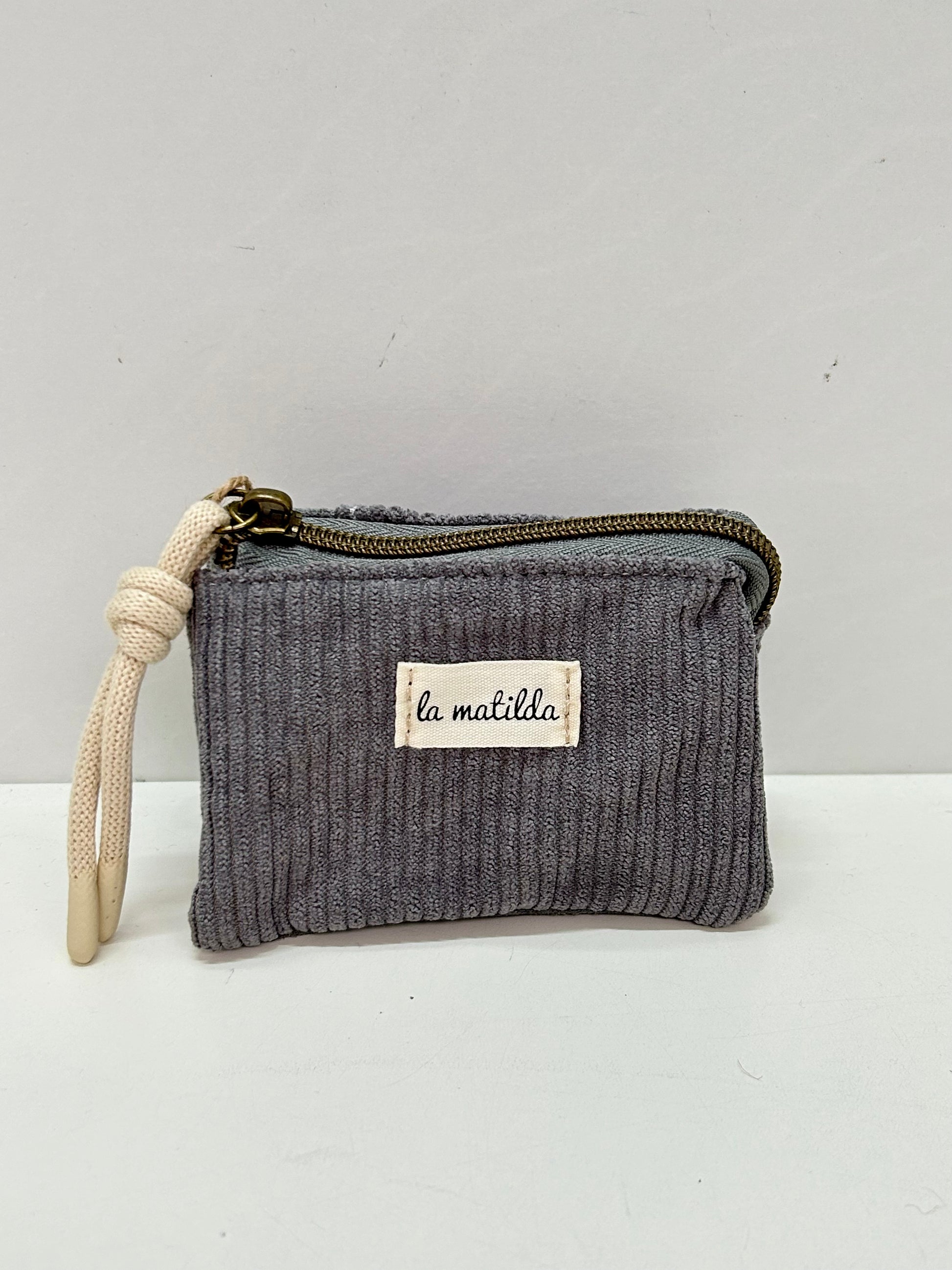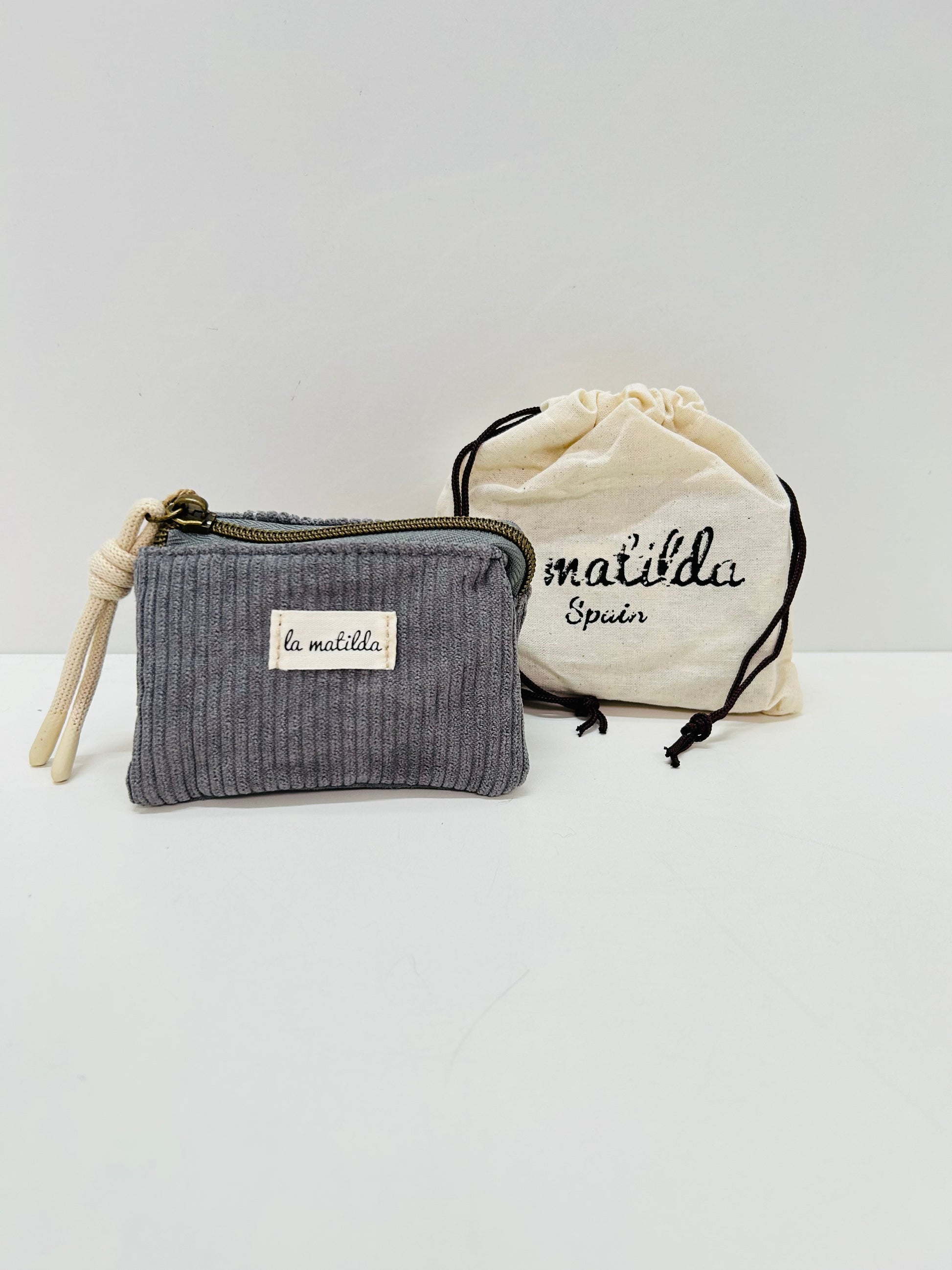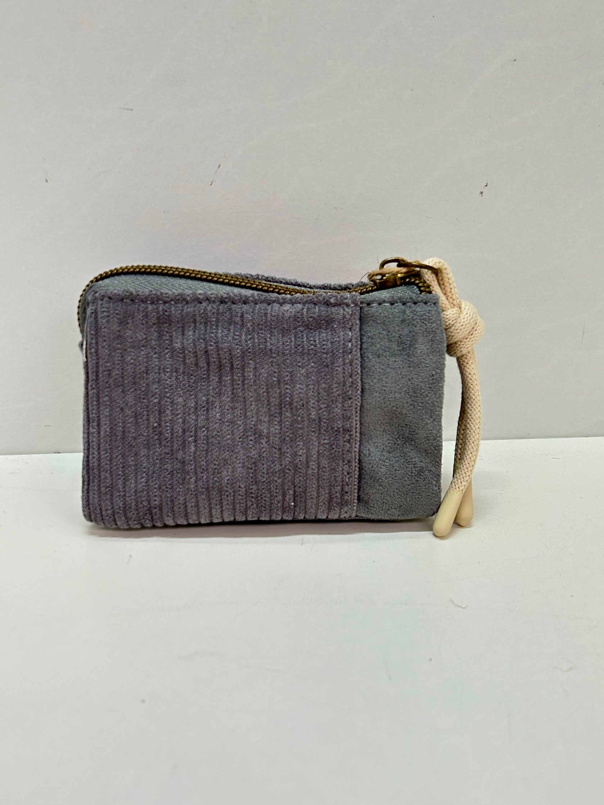 Monedero de tela con forro interior y cierre de cremallera. Ideal para guardar monedas y pequeños accesorios.