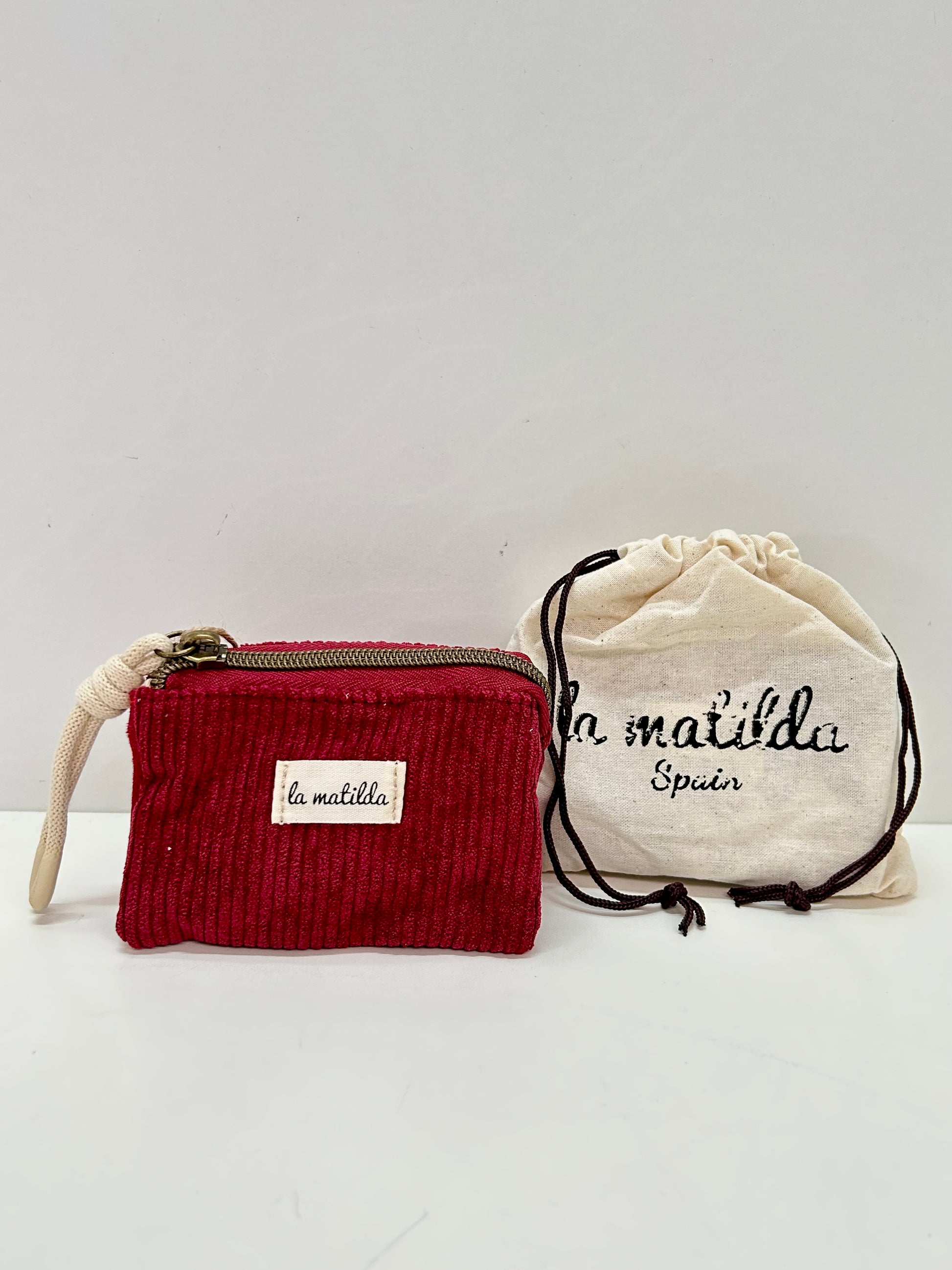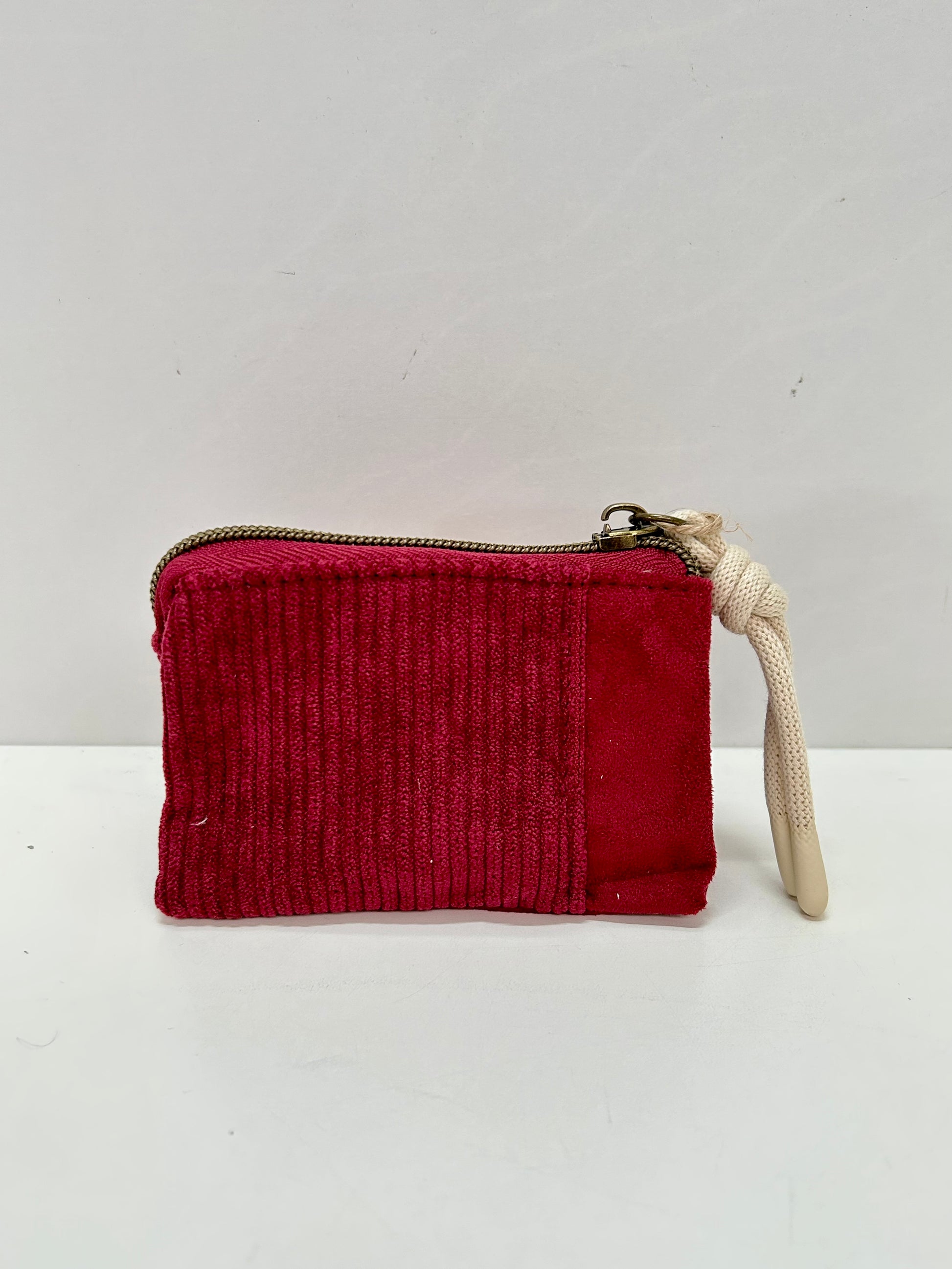 Monedero de tela con forro interior y cierre de cremallera. Ideal para guardar monedas y pequeños accesorios.