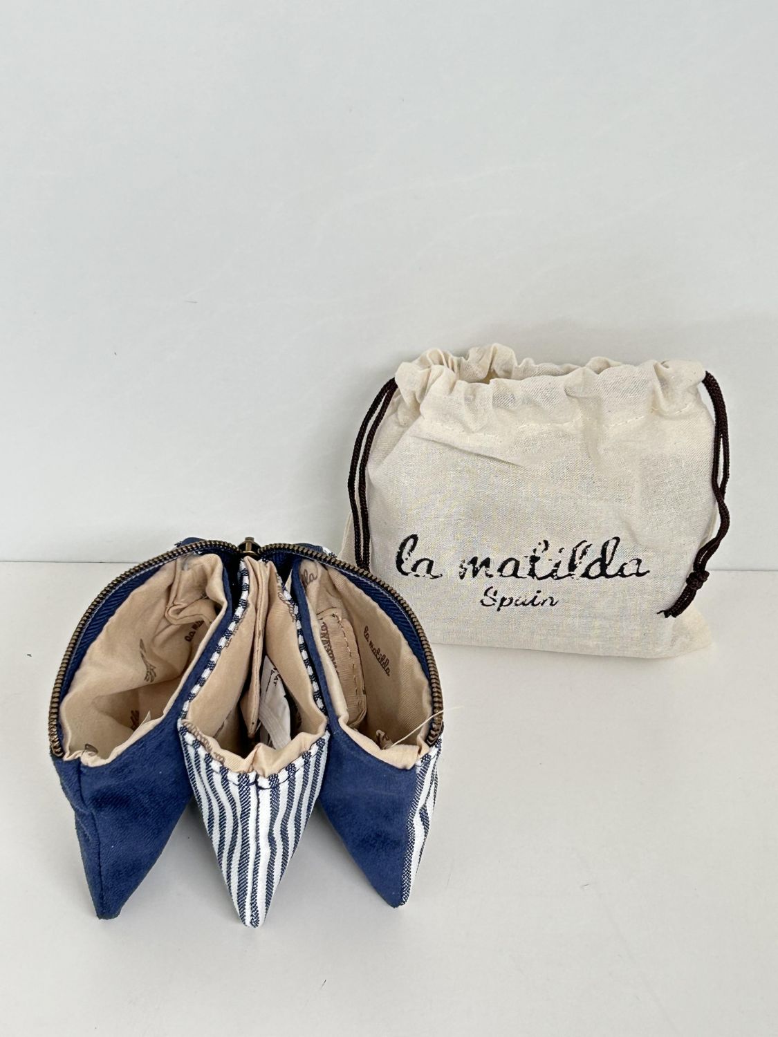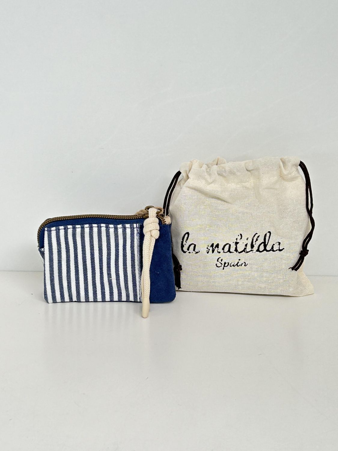 Monedero de tela con forro interior y cierre de cremallera. Ideal para guardar monedas y pequeños accesorios.