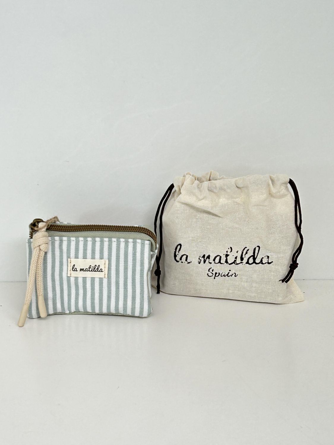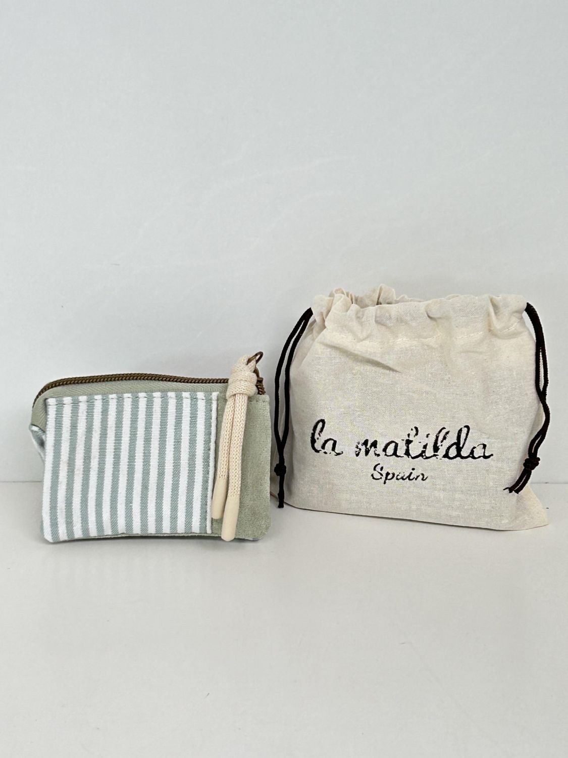 Monedero de tela con forro interior y cierre de cremallera. Ideal para guardar monedas y pequeños accesorios.