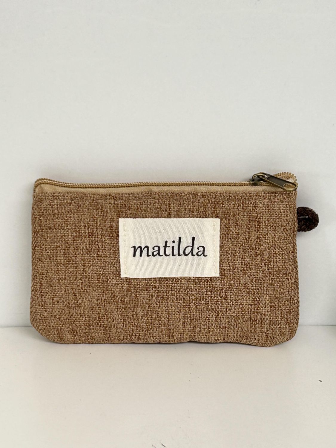 Monedero con cierre de cremallera y asa o correa. Ideal para guardar monedas y pequeños accesorios.