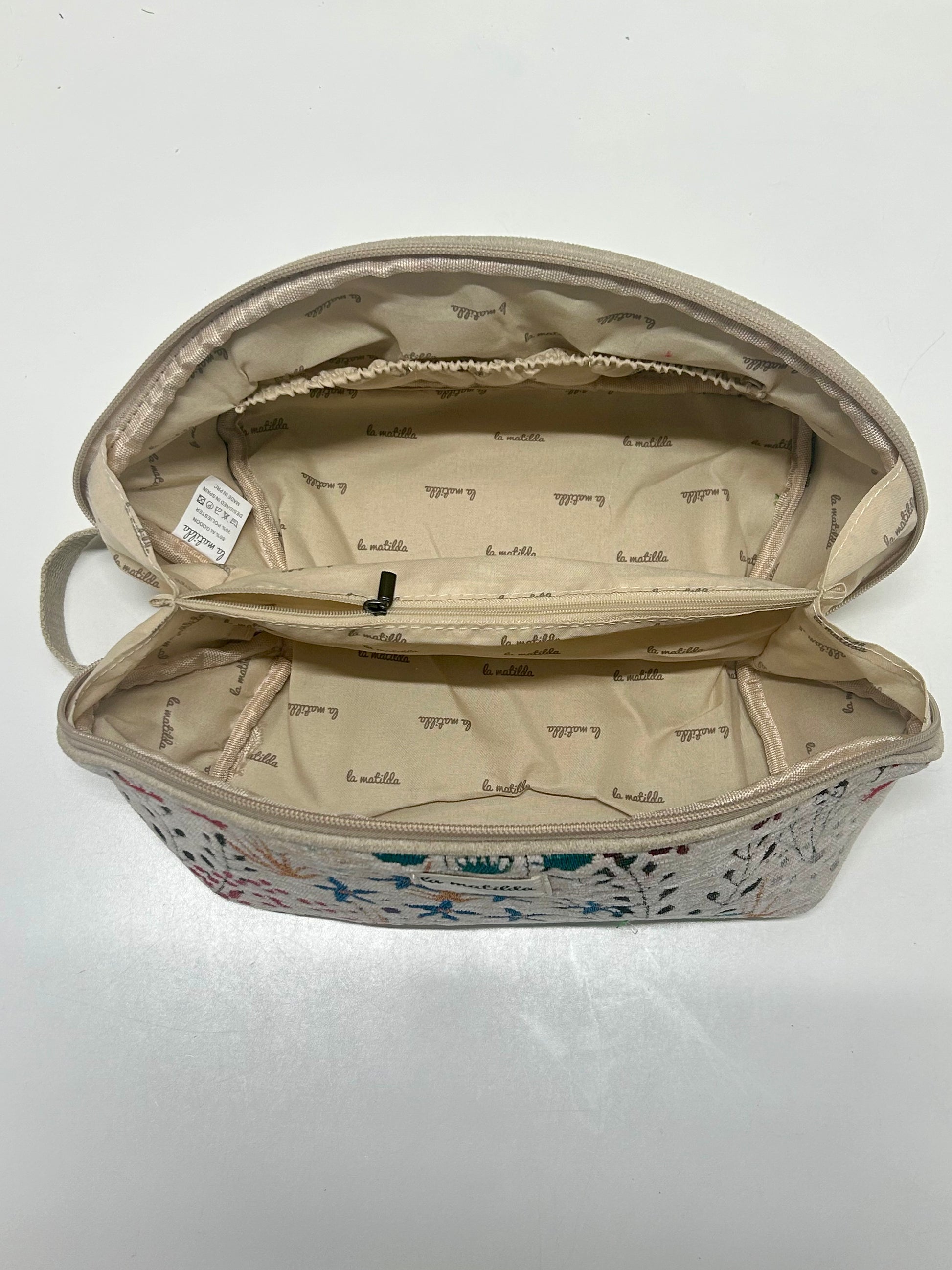 Gracias a su amplio formato permite guardar cosméticos, productos de aseo o incluso utilizarlo como funda para zapatillas.