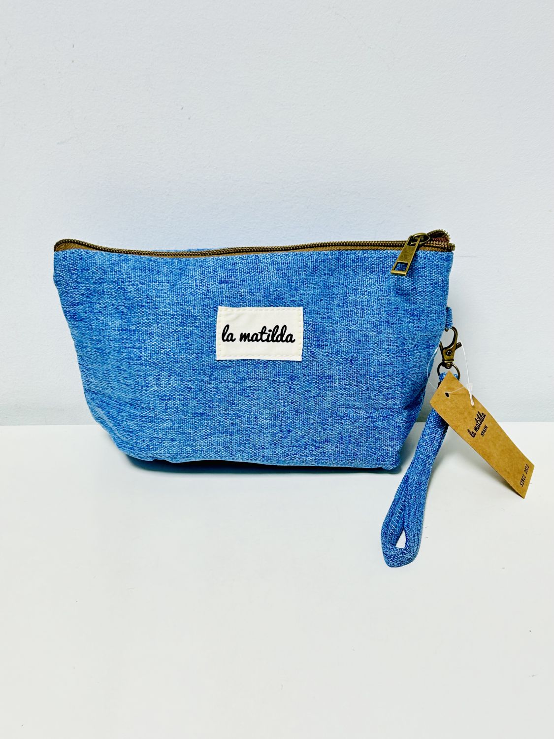 Neceser con cierre de cremallera y asa o correa. Ideal para maquillaje o aseo personal.