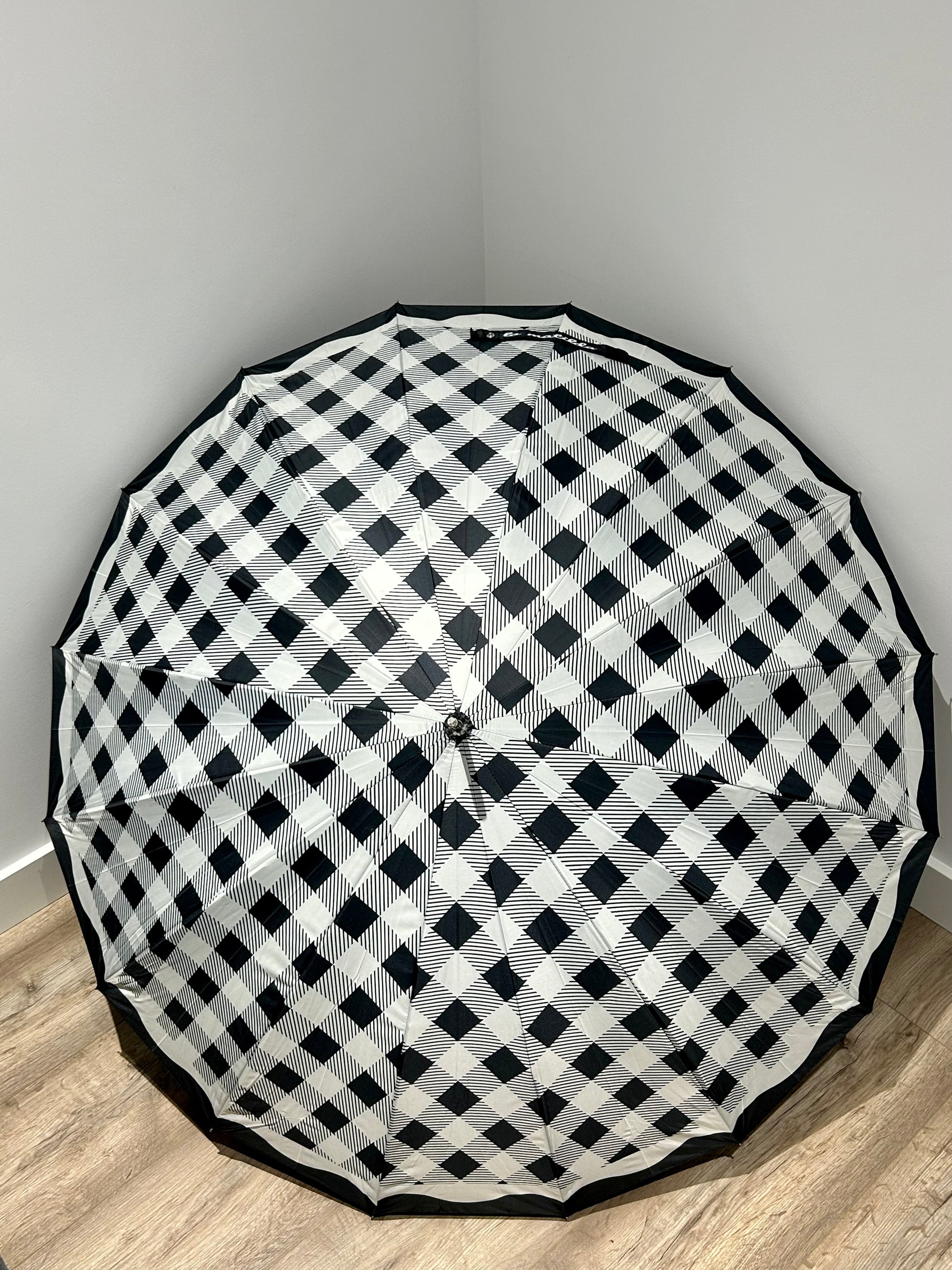 Paraguas largo 16 varillas La Matilda Gingham Negro