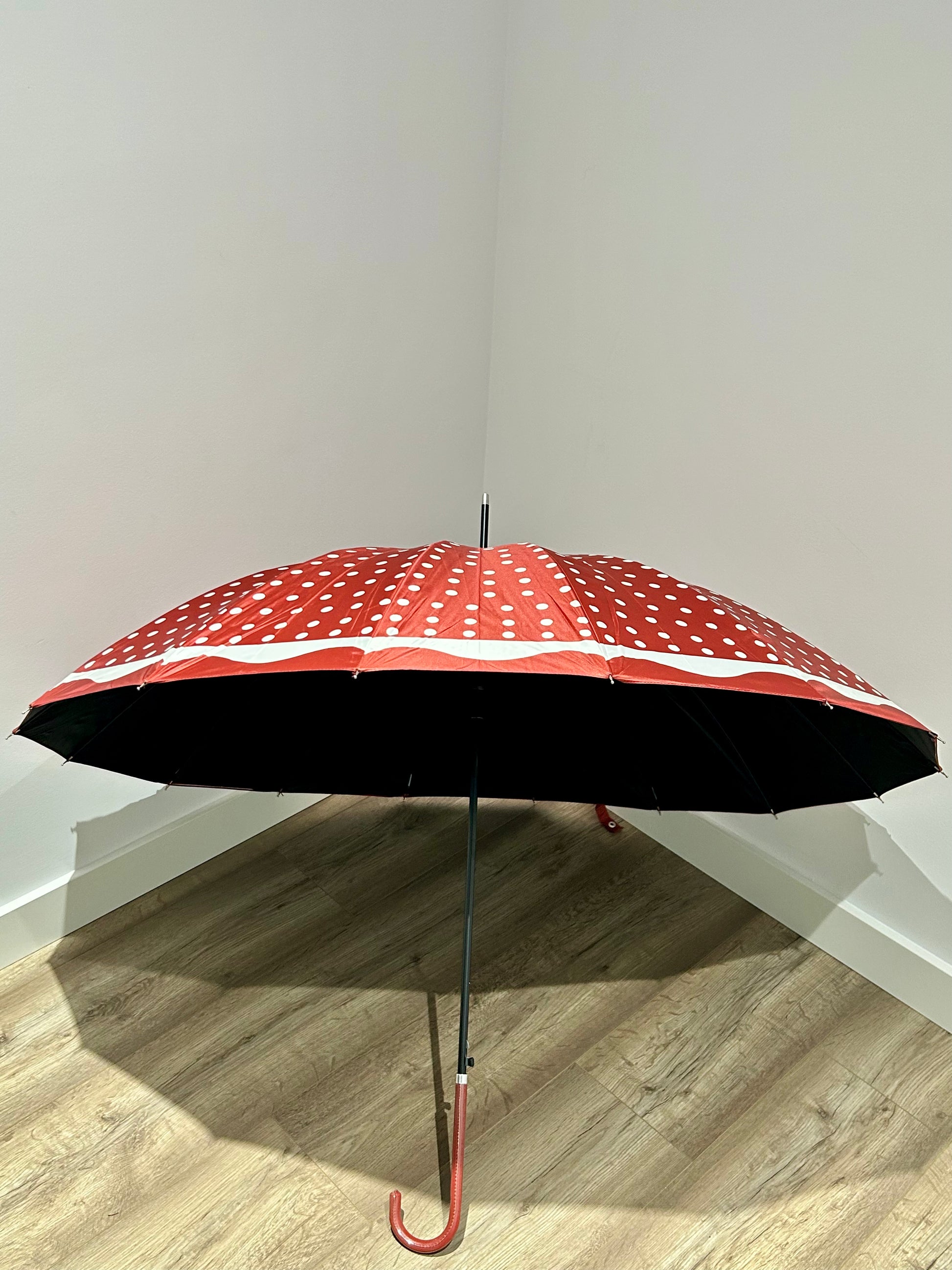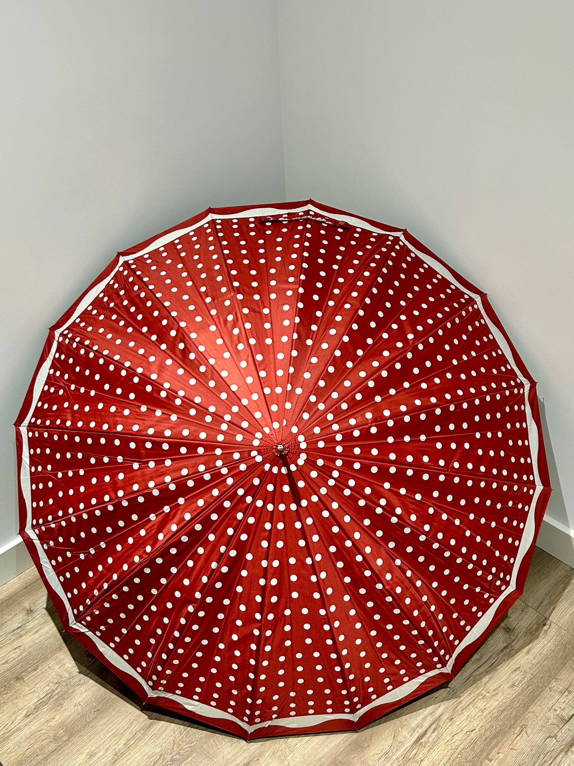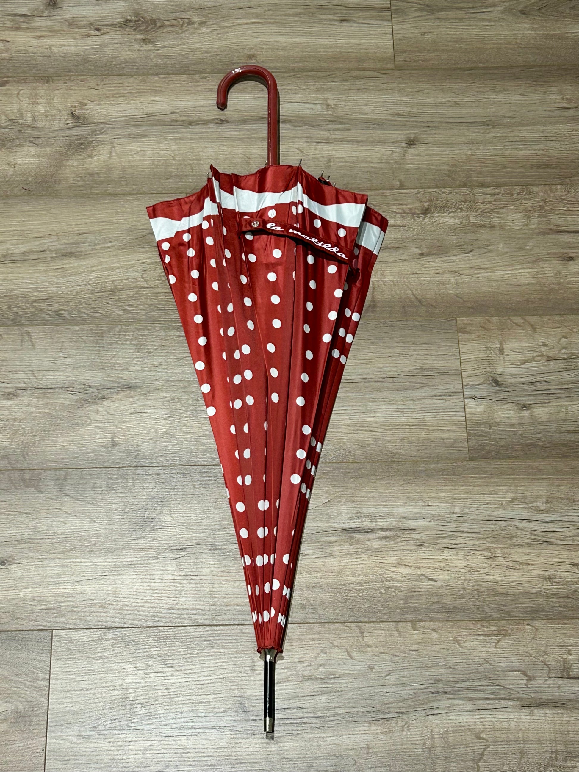 Paraguas largo 16 varillas La Matilda Topos Rojo