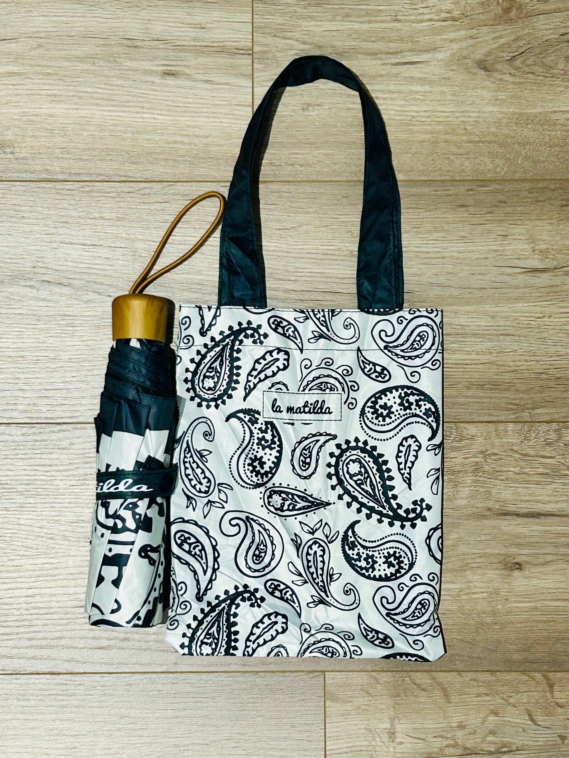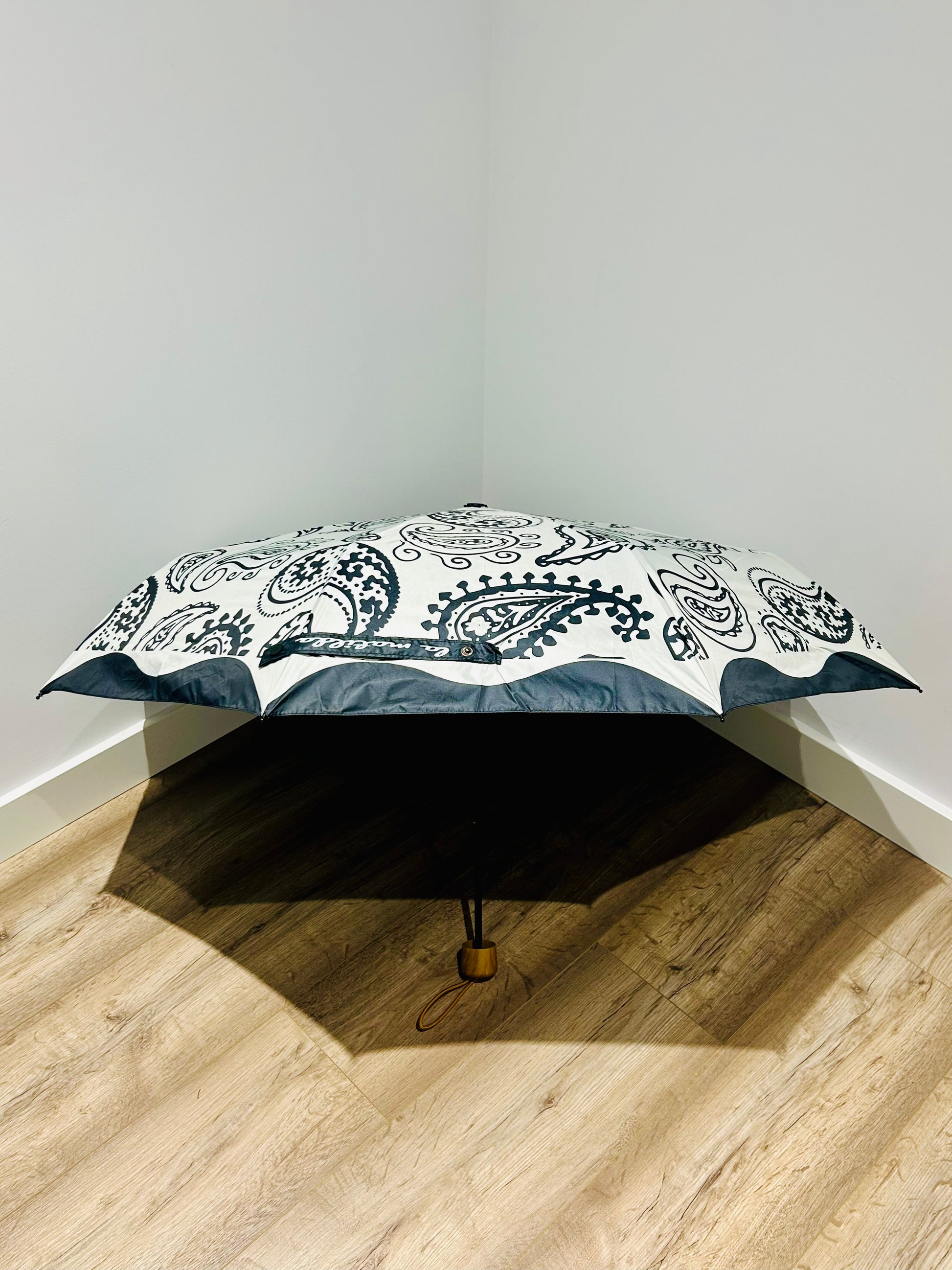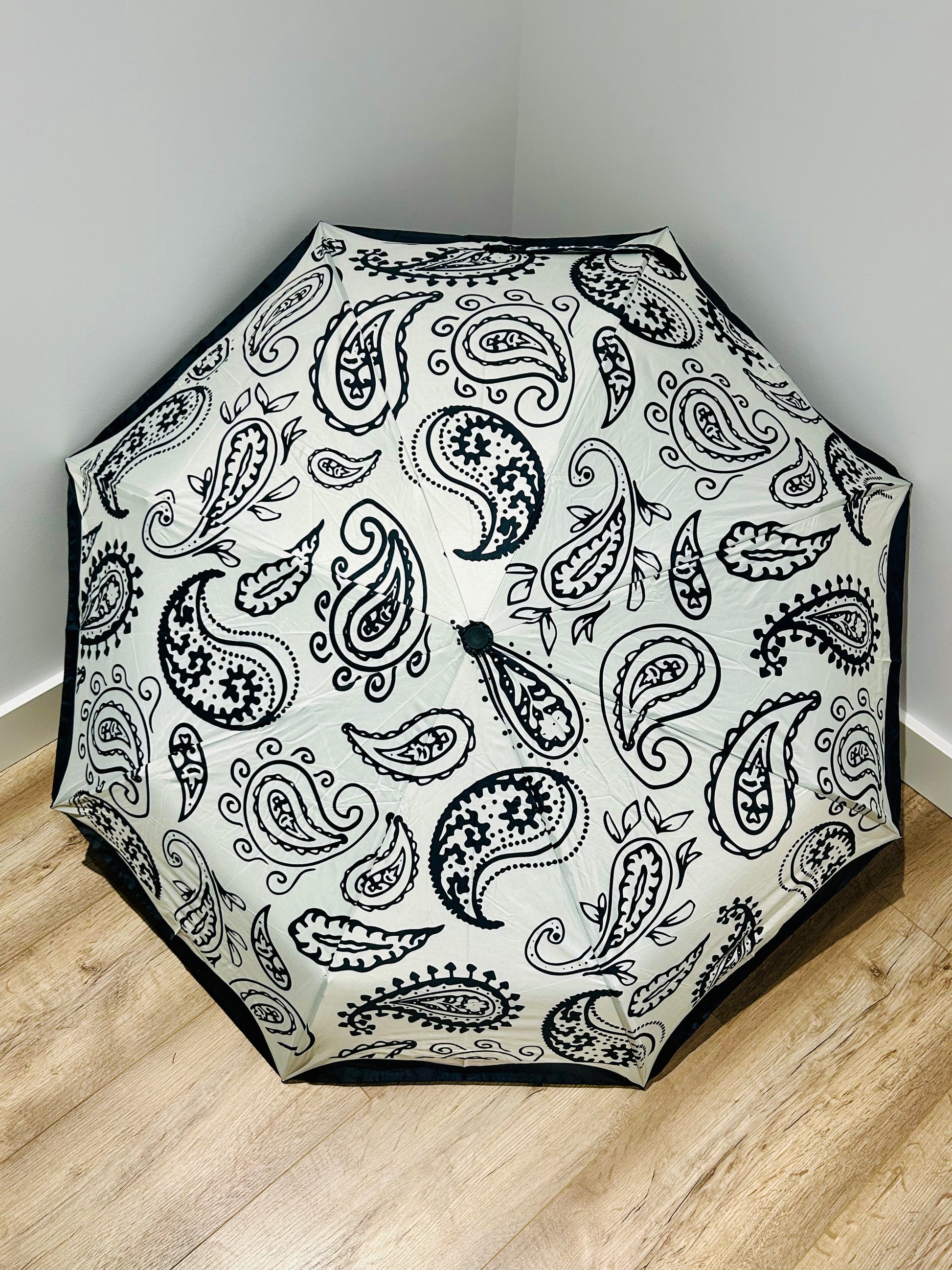 Paraguas plegable La Matilda; combina ligereza, resistencia y estilo en una pieza práctica para cualquier época del año. Su estructura de 8 varillas con sistema anti viento garantiza estabilidad, mientras que la apertura y cierre manual con empuñadura de botón facilita su uso. El revestimiento interior negro con tratamiento Black Coating ofrece protección UV y un efecto de sombra más fresco.