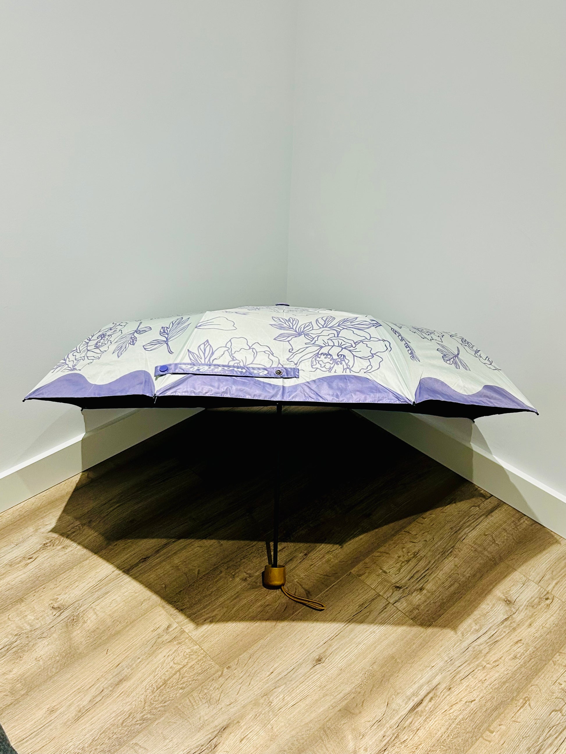 Paraguas plegable La Matilda; combina ligereza, resistencia y estilo en una pieza práctica para cualquier época del año. Su estructura de 8 varillas con sistema anti viento garantiza estabilidad, mientras que la apertura y cierre manual con empuñadura de botón facilita su uso. El revestimiento interior negro con tratamiento Black Coating ofrece protección UV y un efecto de sombra más fresco.